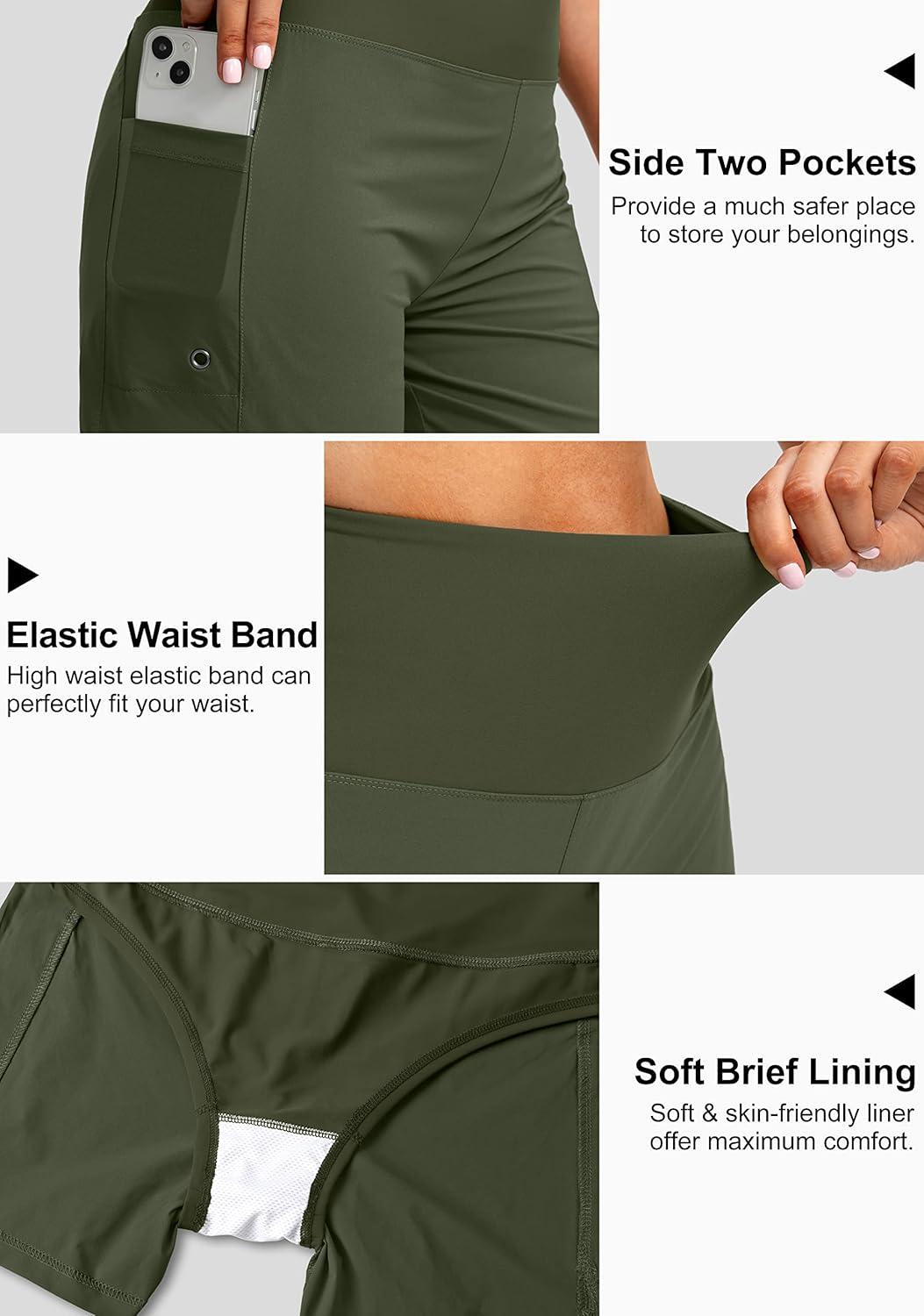 imageG Gradual Womens 5quot High Waisted Swim Board Shorts with Phone Pockets UPF 50 Quick Dry Beach Shorts for Women with LinerOlive