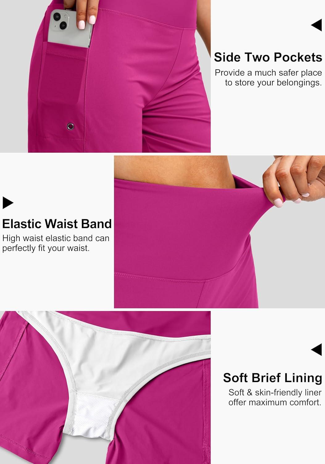 G Gradual Women’s 5″ High Waisted Swim Board Shorts with Phone Pockets UPF 50+ Quick Dry Beach Shorts for Women with Liner(Rose)