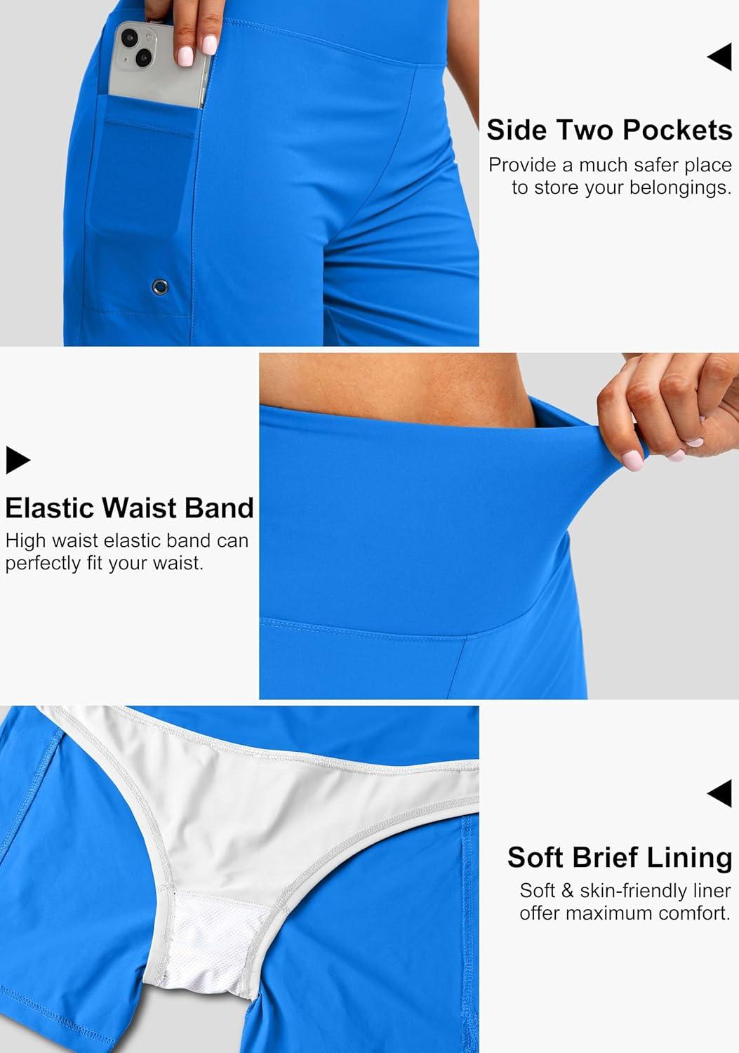 G Gradual Women’s 5″ High Waisted Swim Board Shorts with Phone Pockets UPF 50+ Quick Dry Beach Shorts for Women with Liner(Vivid Blue)