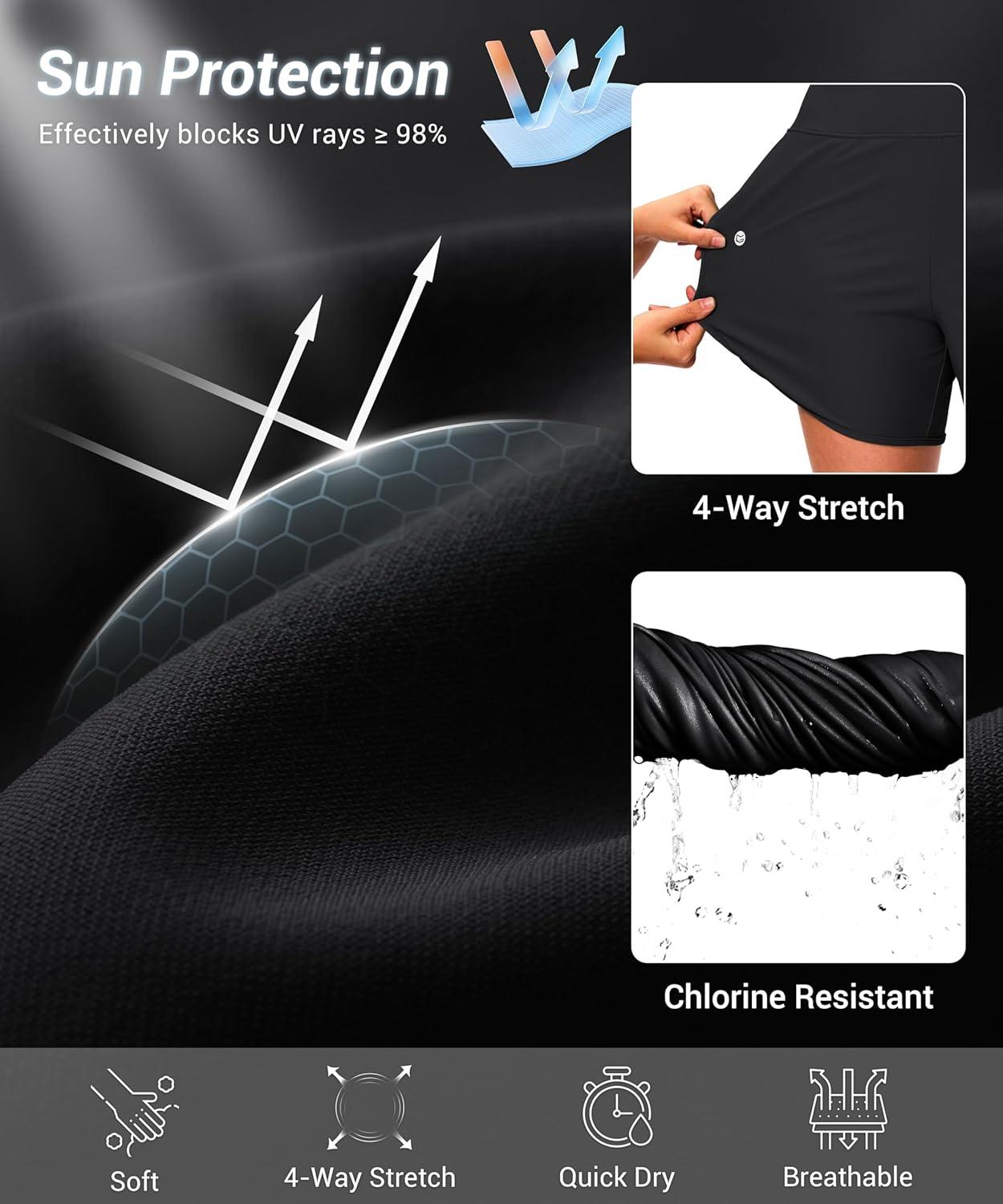 G GRADUAL Women’s 5″ Swim Board Shorts High Waisted Quick Dry Swimming Bathing Suit Bottoms for Women with Liner Pockets(Black)