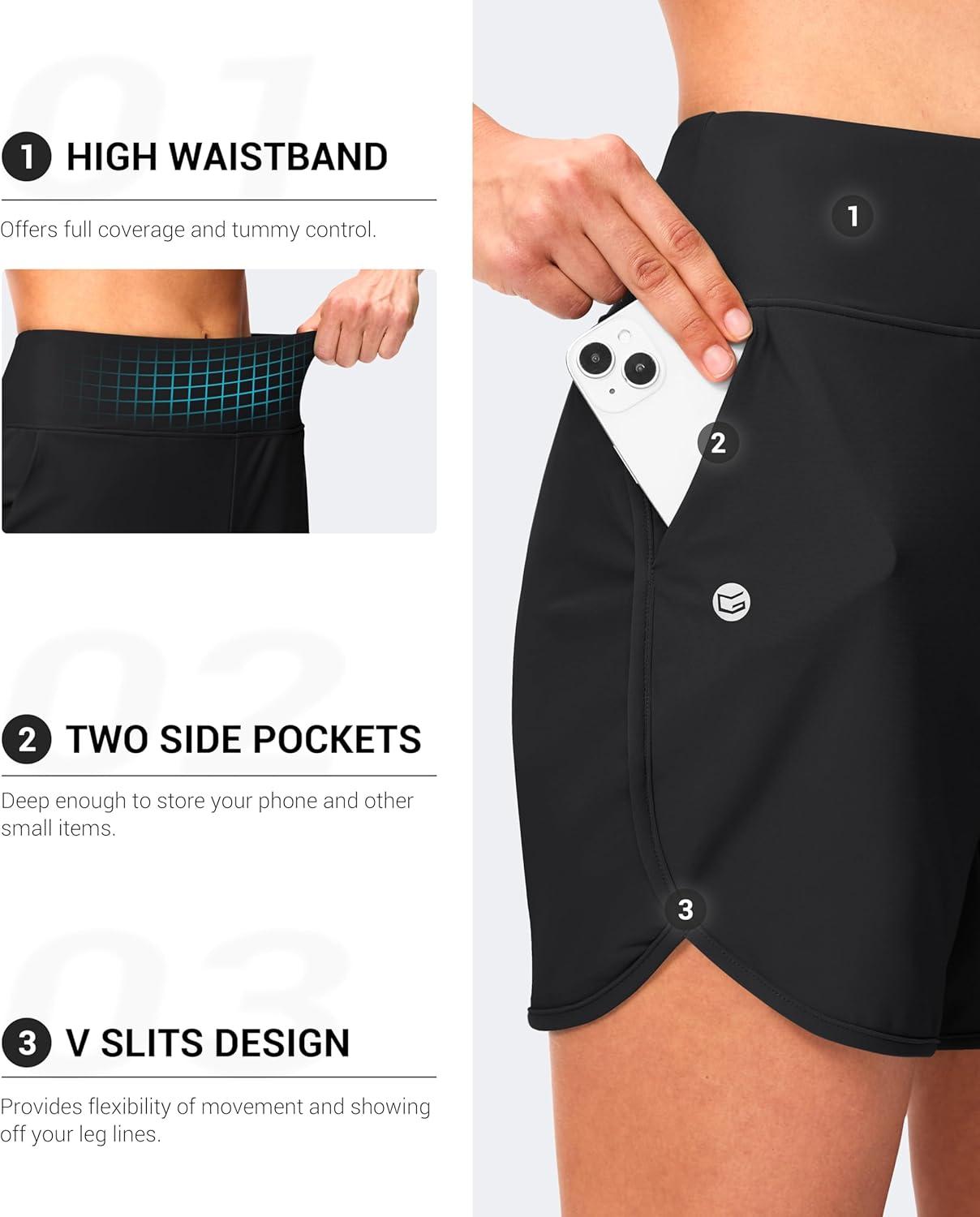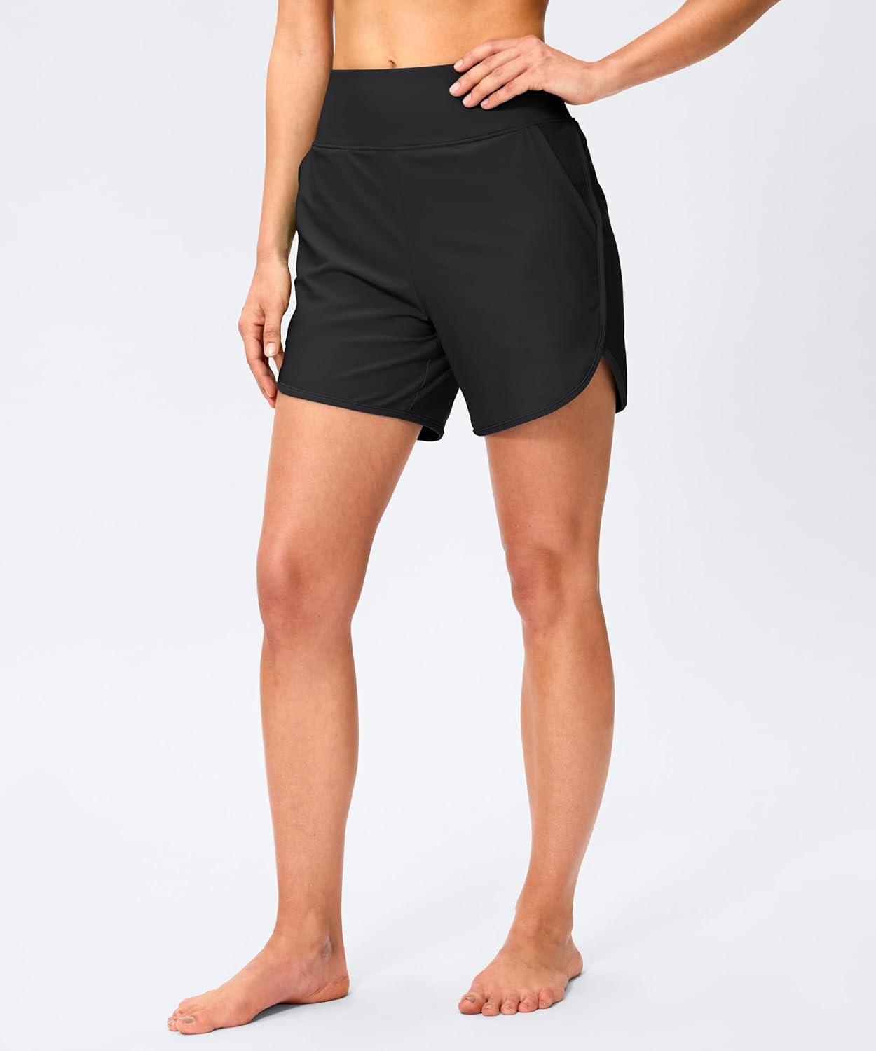 G GRADUAL Women's 5" Swim Board Shorts High Waisted Quick Dry Swimming Bathing Suit Bottoms for Women with Liner Pockets(Black)