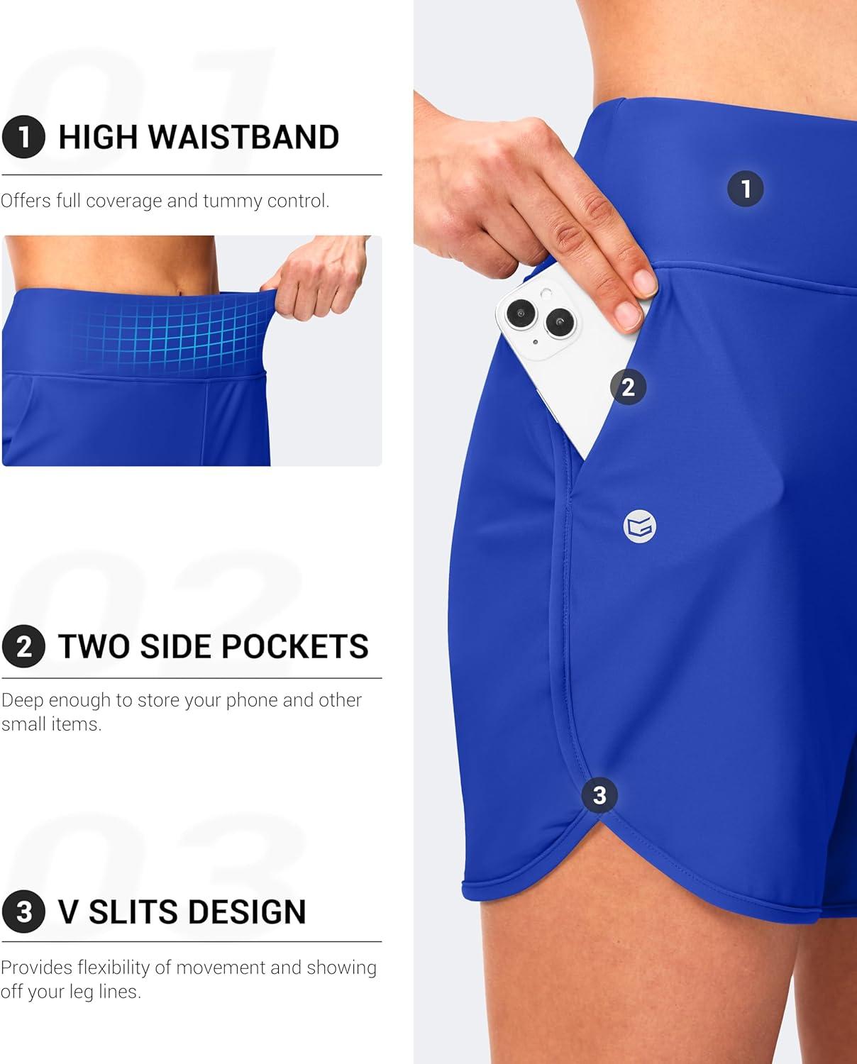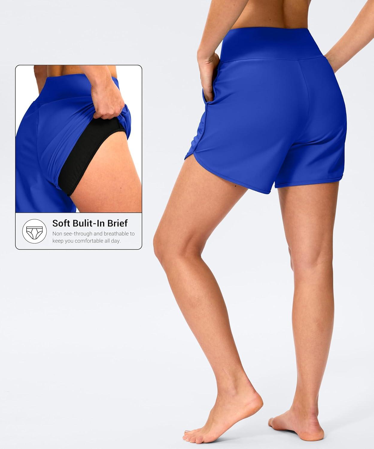 G GRADUAL Women's 5" Swim Board Shorts High Waisted Quick Dry Swimming Bathing Suit Bottoms for Women with Liner Pockets(Blue)