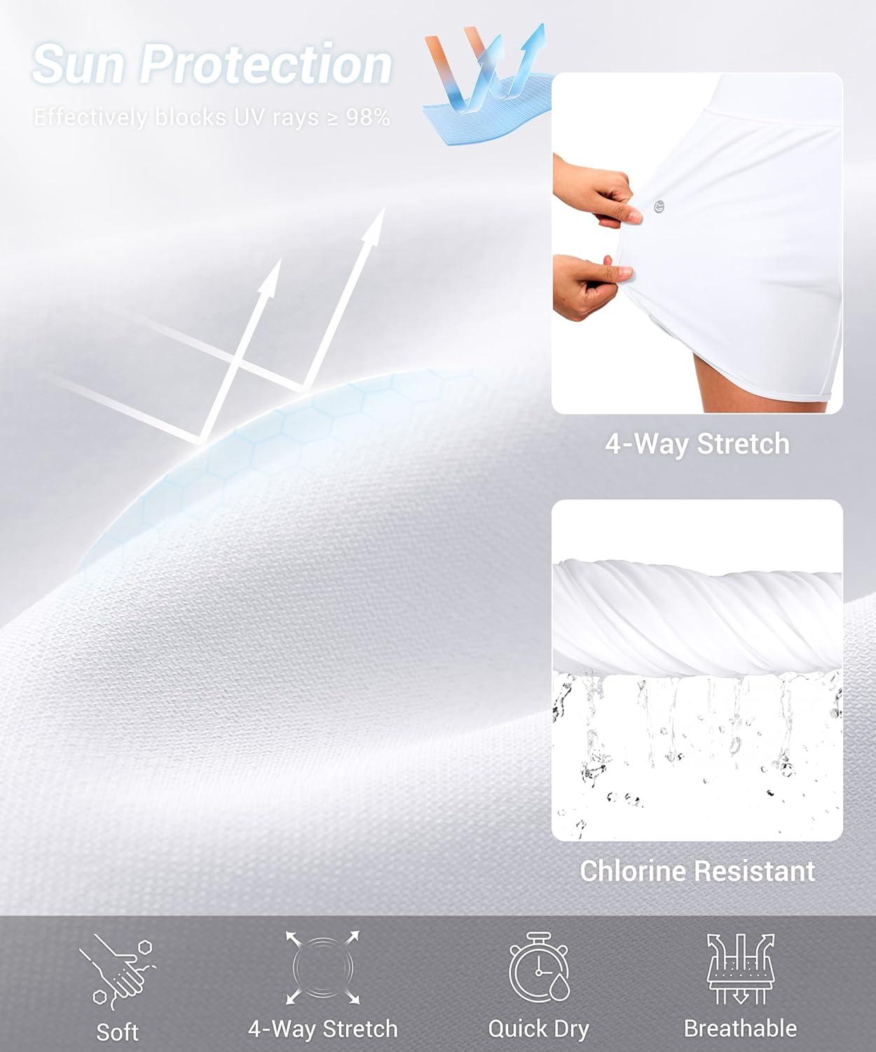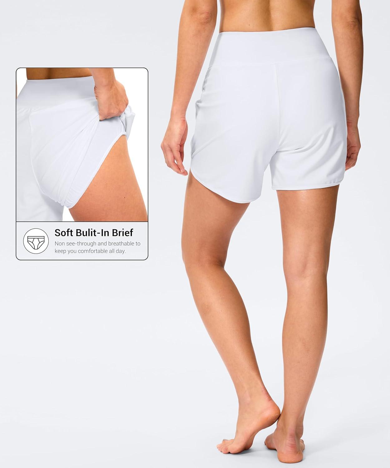 G GRADUAL Women’s 5″ Swim Board Shorts High Waisted Quick Dry Swimming Bathing Suit Bottoms for Women with Liner Pockets(White)