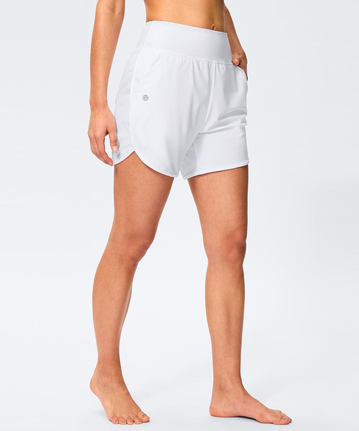 G GRADUAL Women's 5" Swim Board Shorts High Waisted Quick Dry Swimming Bathing Suit Bottoms for Women with Liner Pockets(White)
