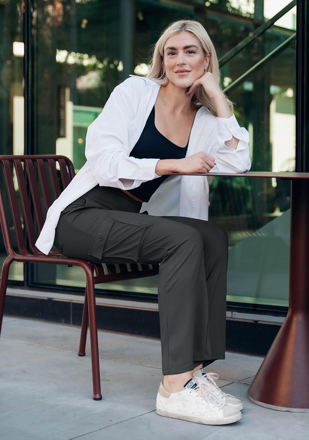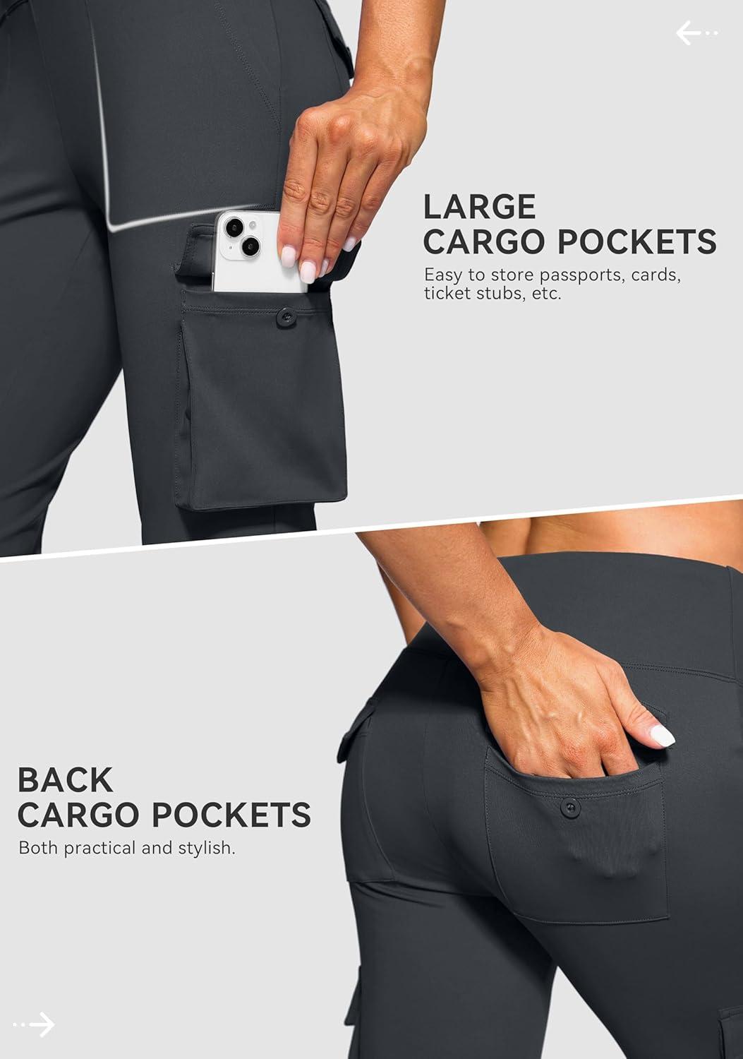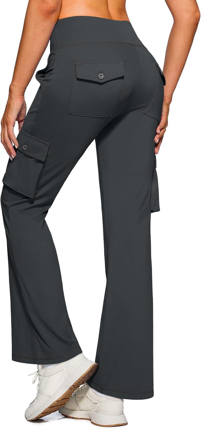 G Gradual Women's 6 Pockets High Waist Yoga Pants Stretch Cargo Flare Leggings for Fitness, Travel, Casual Wear(Dark Grey)
