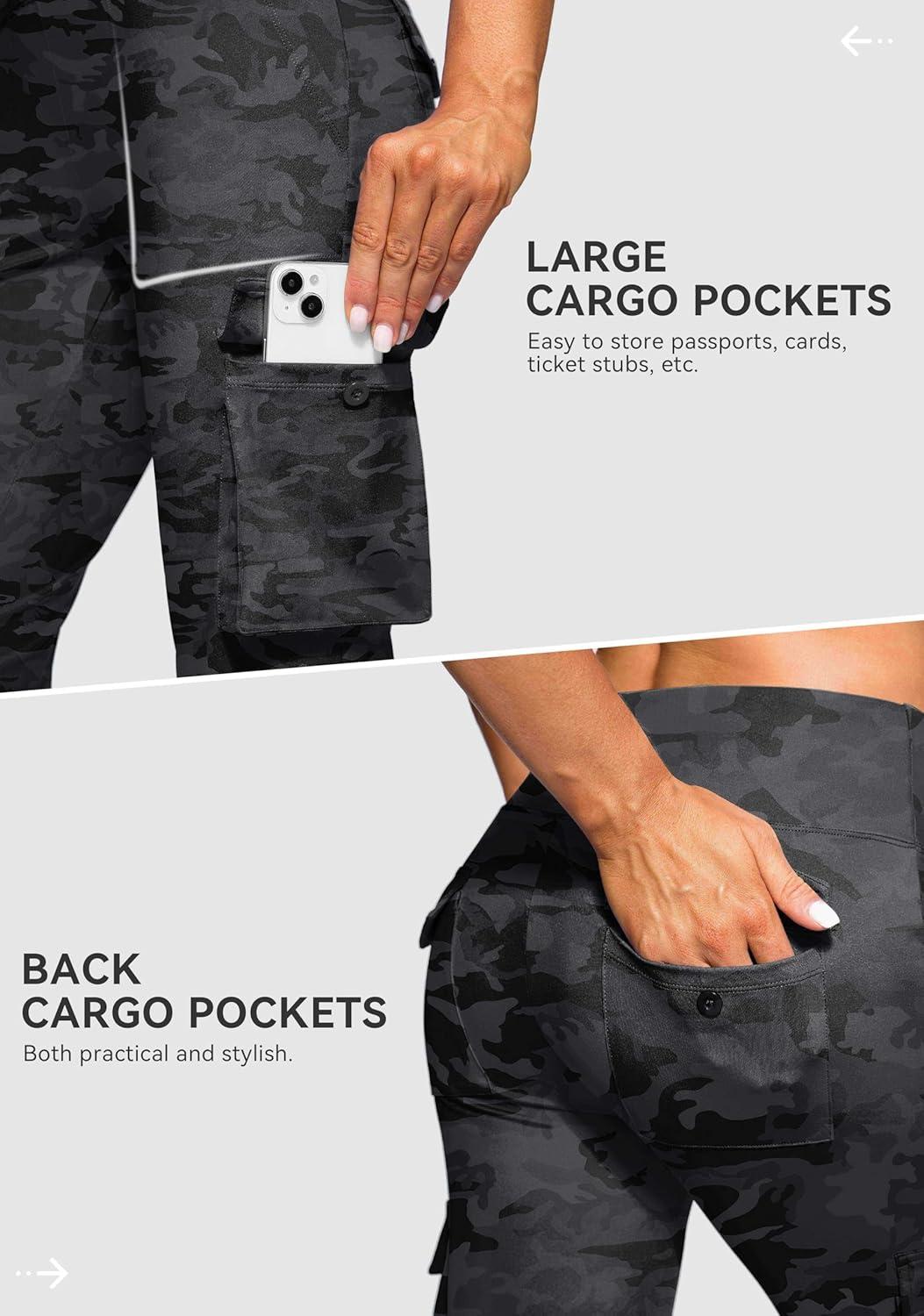 G Gradual Women's 6 Pockets High Waist Yoga Pants Stretch Cargo Flare Leggings for Fitness, Travel, Casual Wear(Grey Camo)