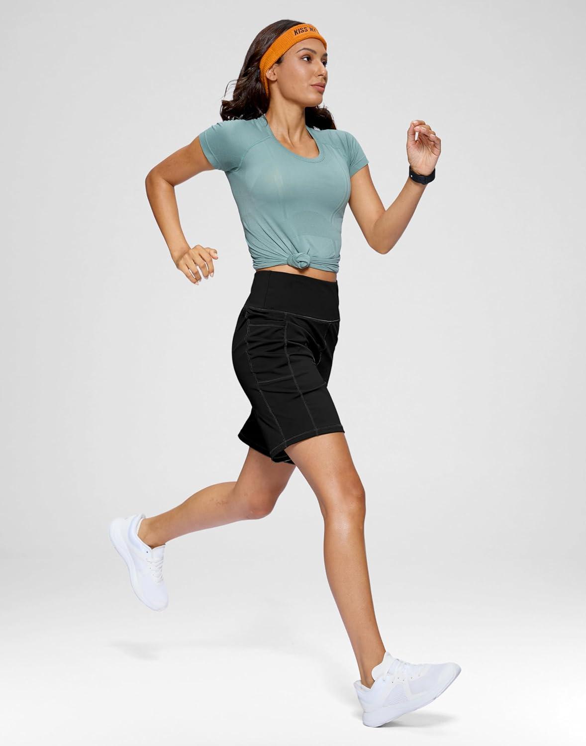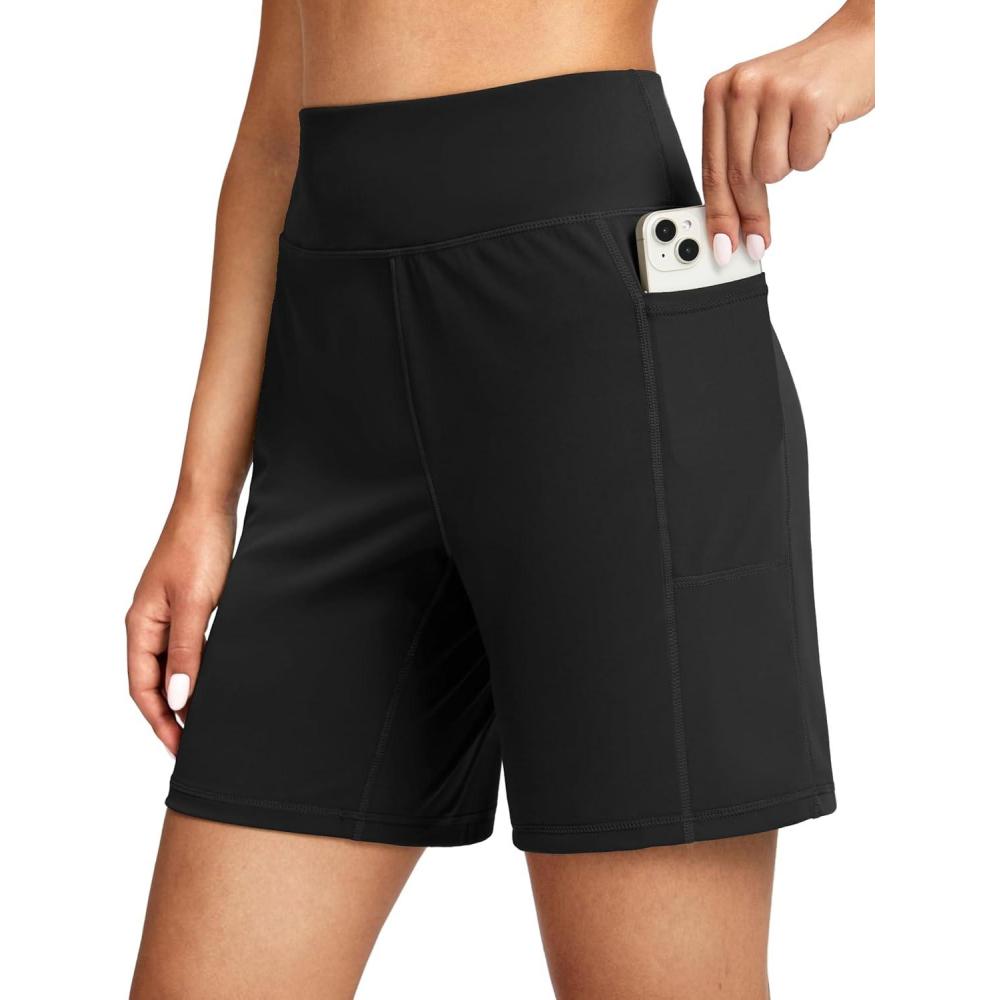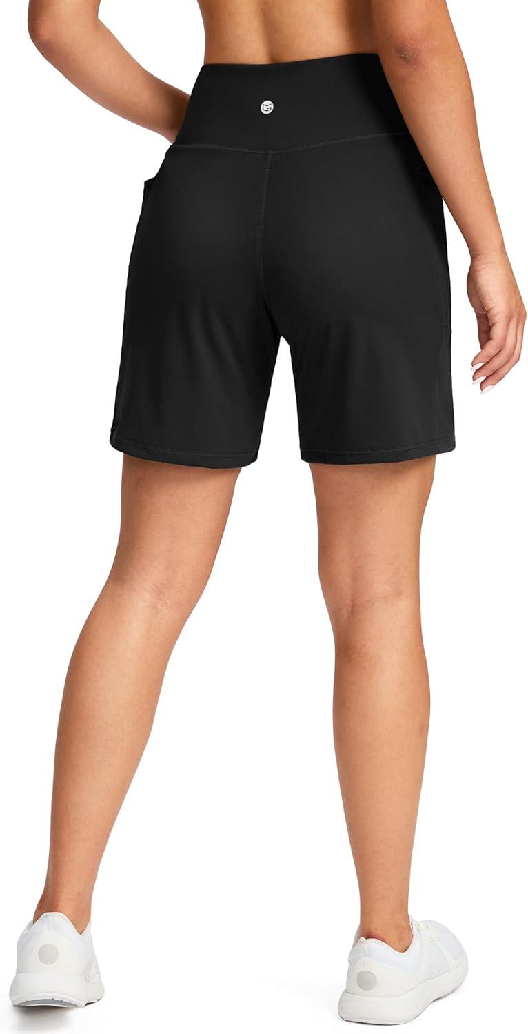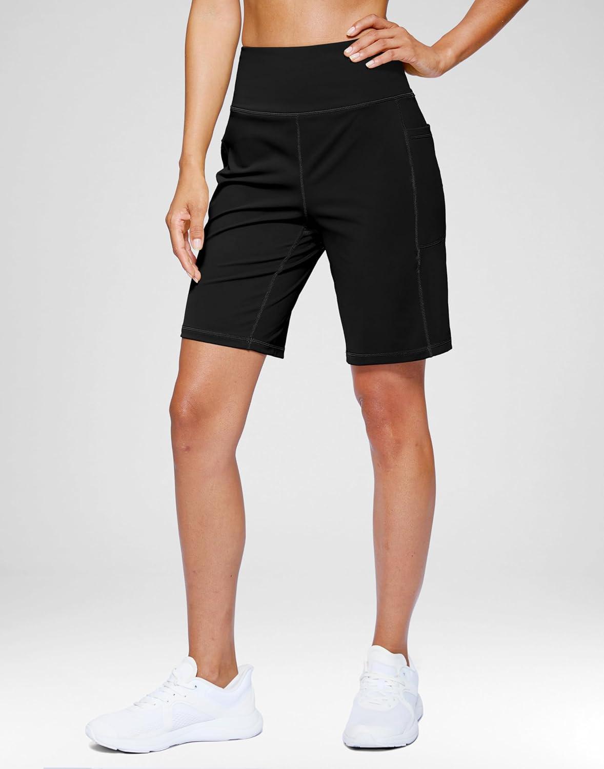 G Gradual Women’s 7”/9″ Bermuda Long Shorts with Pockets High Waisted Athletic Knee Length Shorts for Women Walking(Black)