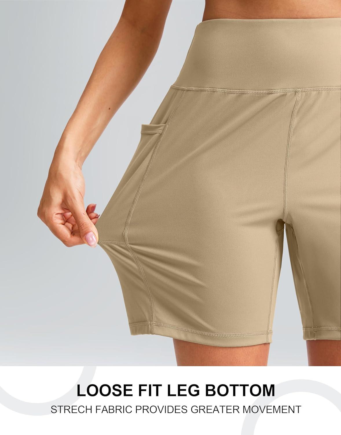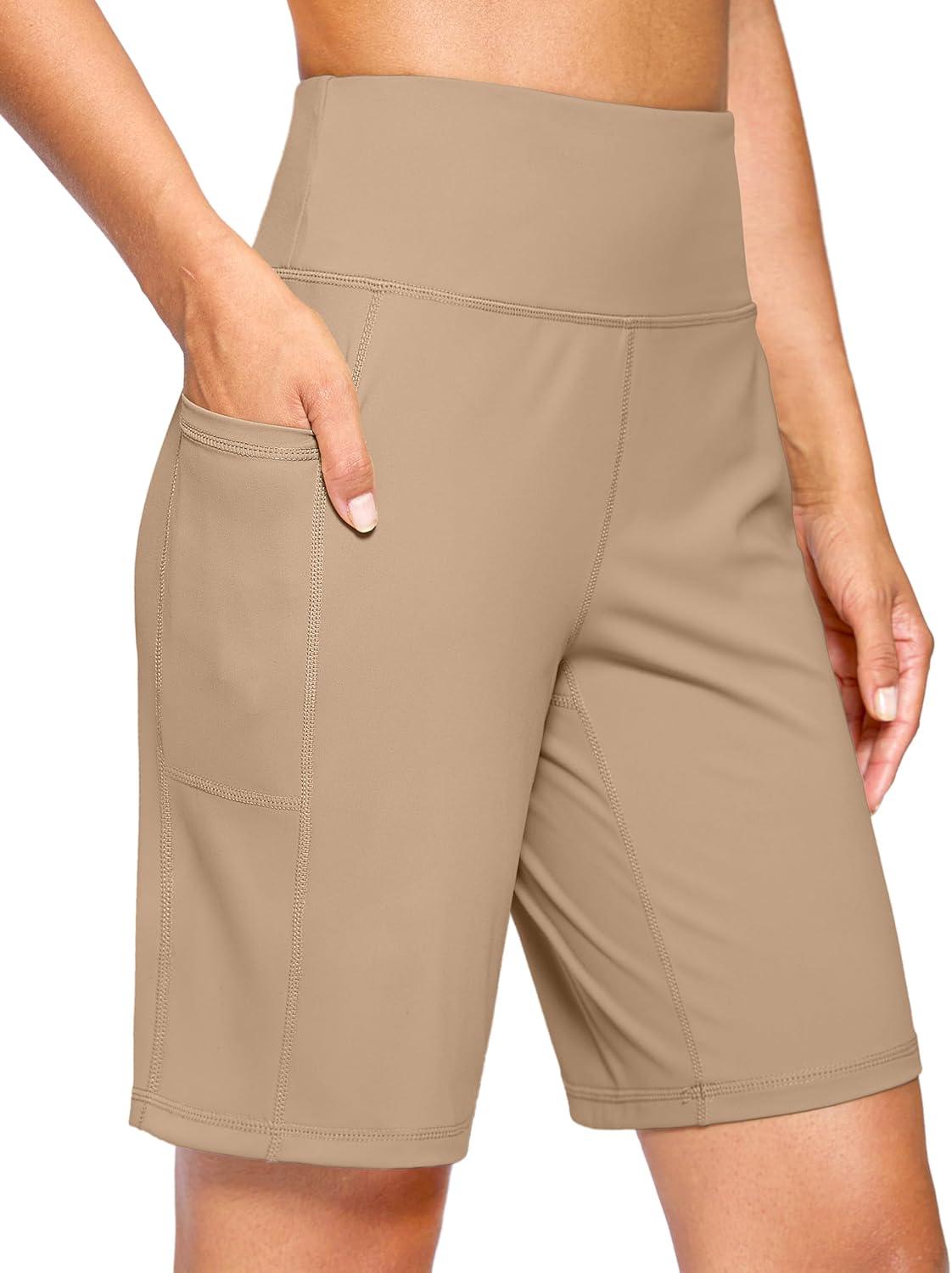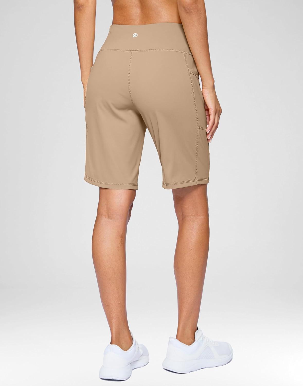 G Gradual Women’s 7”/9″ Bermuda Long Shorts with Pockets High Waisted Athletic Knee Length Shorts for Women Walking(Light Khaki)