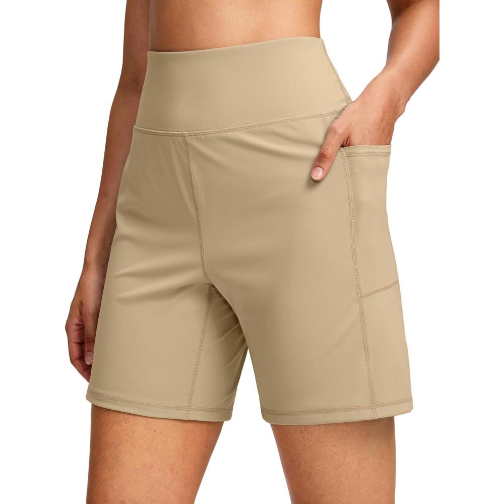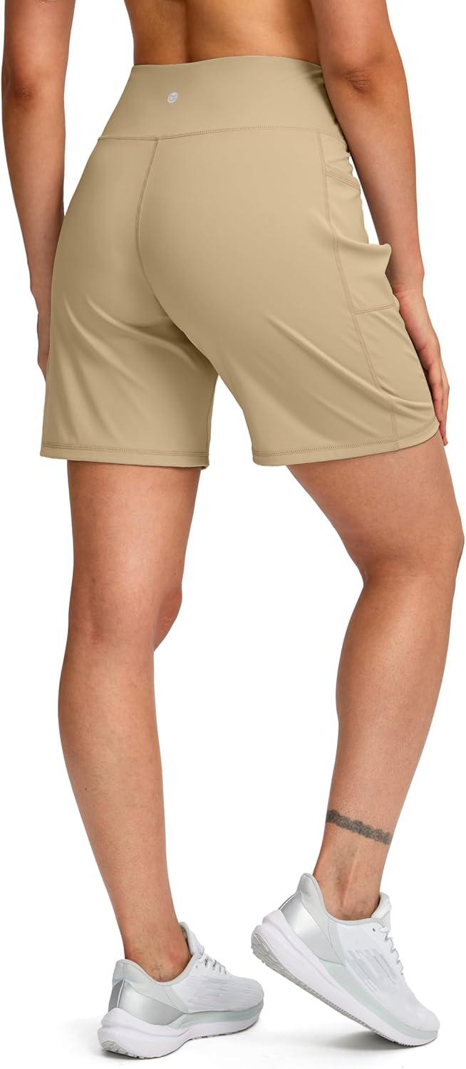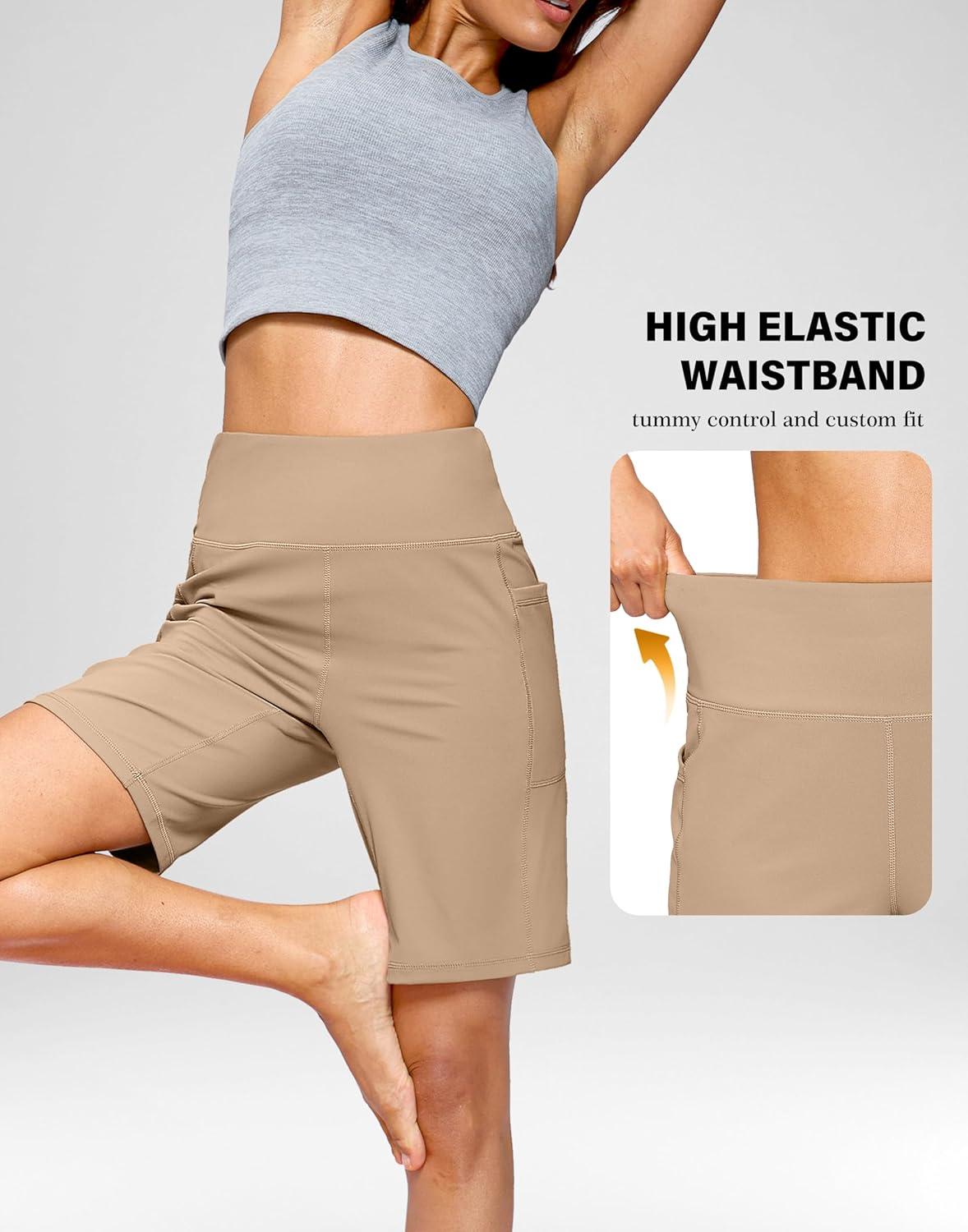 G Gradual Women’s 7”/9″ Bermuda Long Shorts with Pockets High Waisted Athletic Knee Length Shorts for Women Walking(Light Khaki)