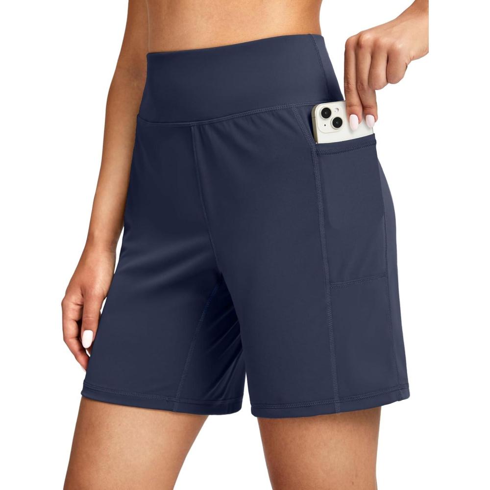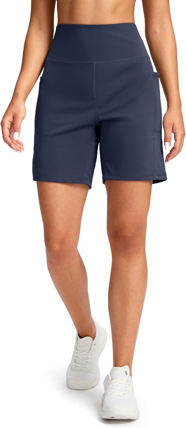 G Gradual Women’s 7”/9″ Bermuda Long Shorts with Pockets High Waisted Athletic Knee Length Shorts for Women Walking(Navy)