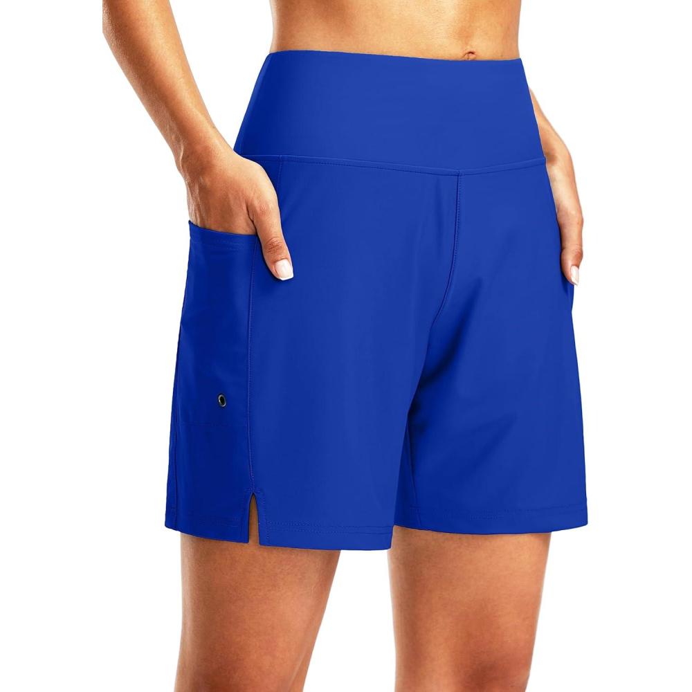 G Gradual Women’s 7″ Long Swim Board Shorts High Waisted Quick Dry Beach Swimming Shorts for Women with Liner Pockets(Blue)