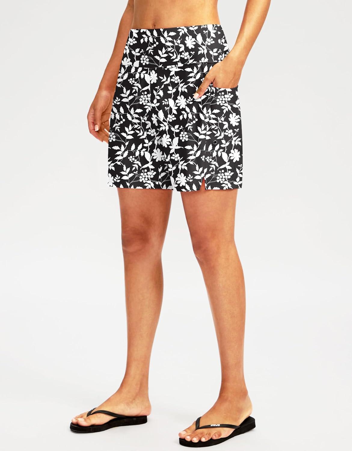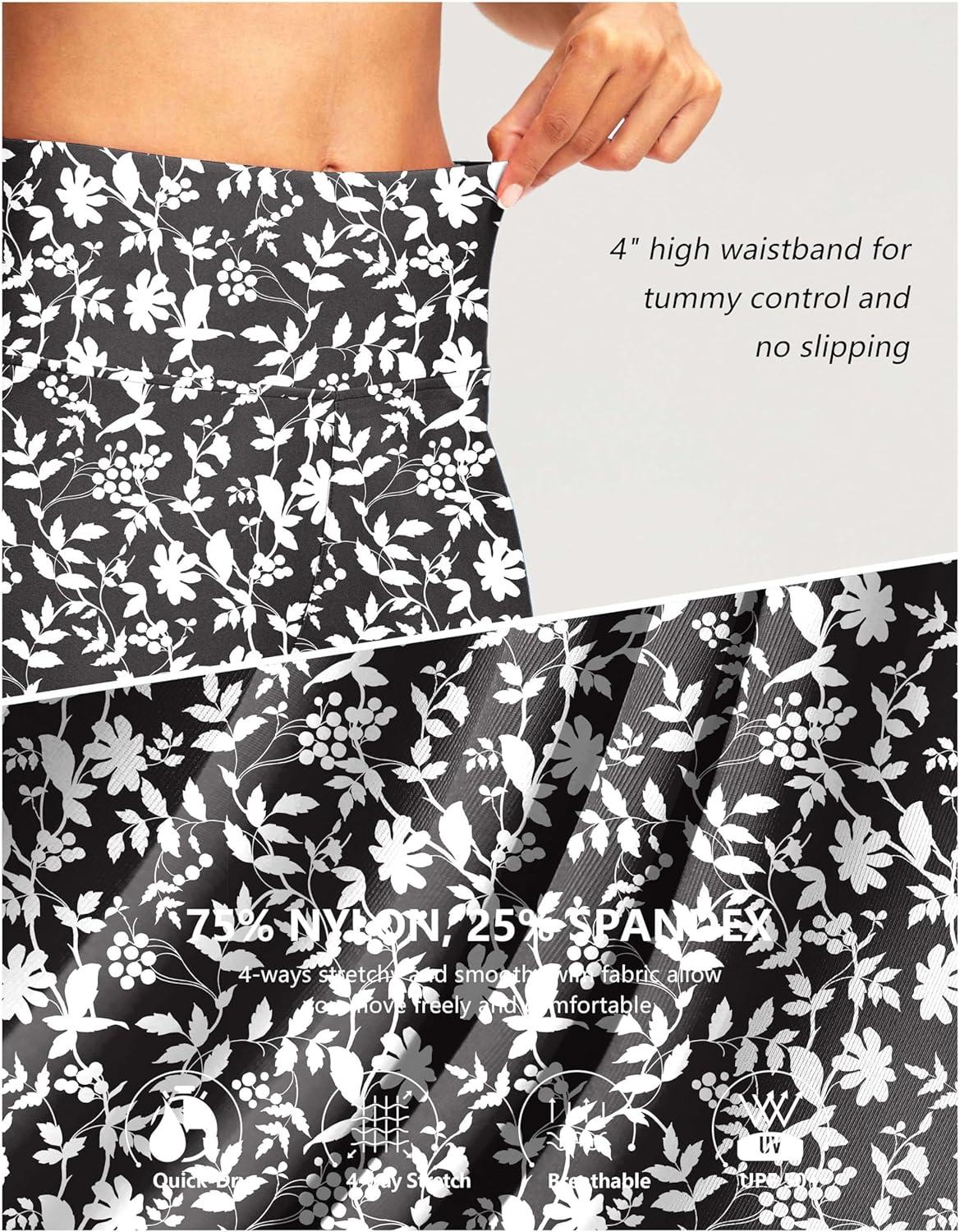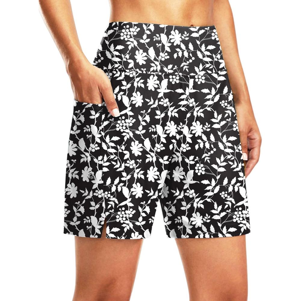 G Gradual Women’s 7″ Long Swim Board Shorts High Waisted Quick Dry Beach Swimming Shorts for Women with Liner Pockets(D White Flower)