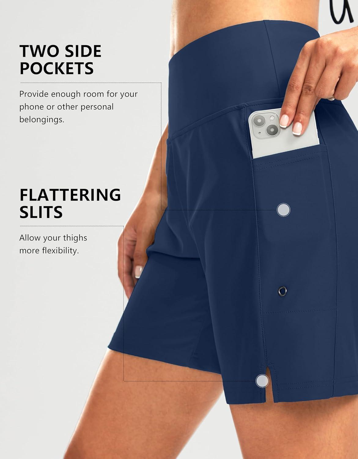 G Gradual Women’s 7″ Long Swim Board Shorts High Waisted Quick Dry Beach Swimming Shorts for Women with Liner Pockets(Dark Blue)