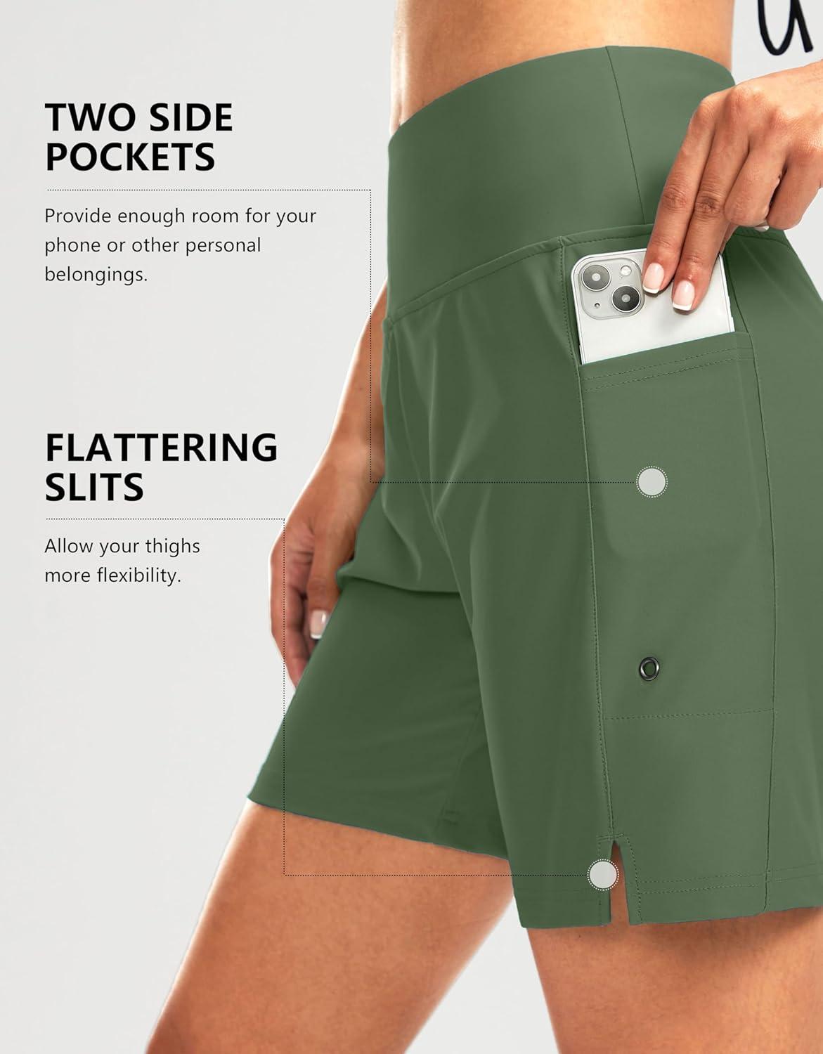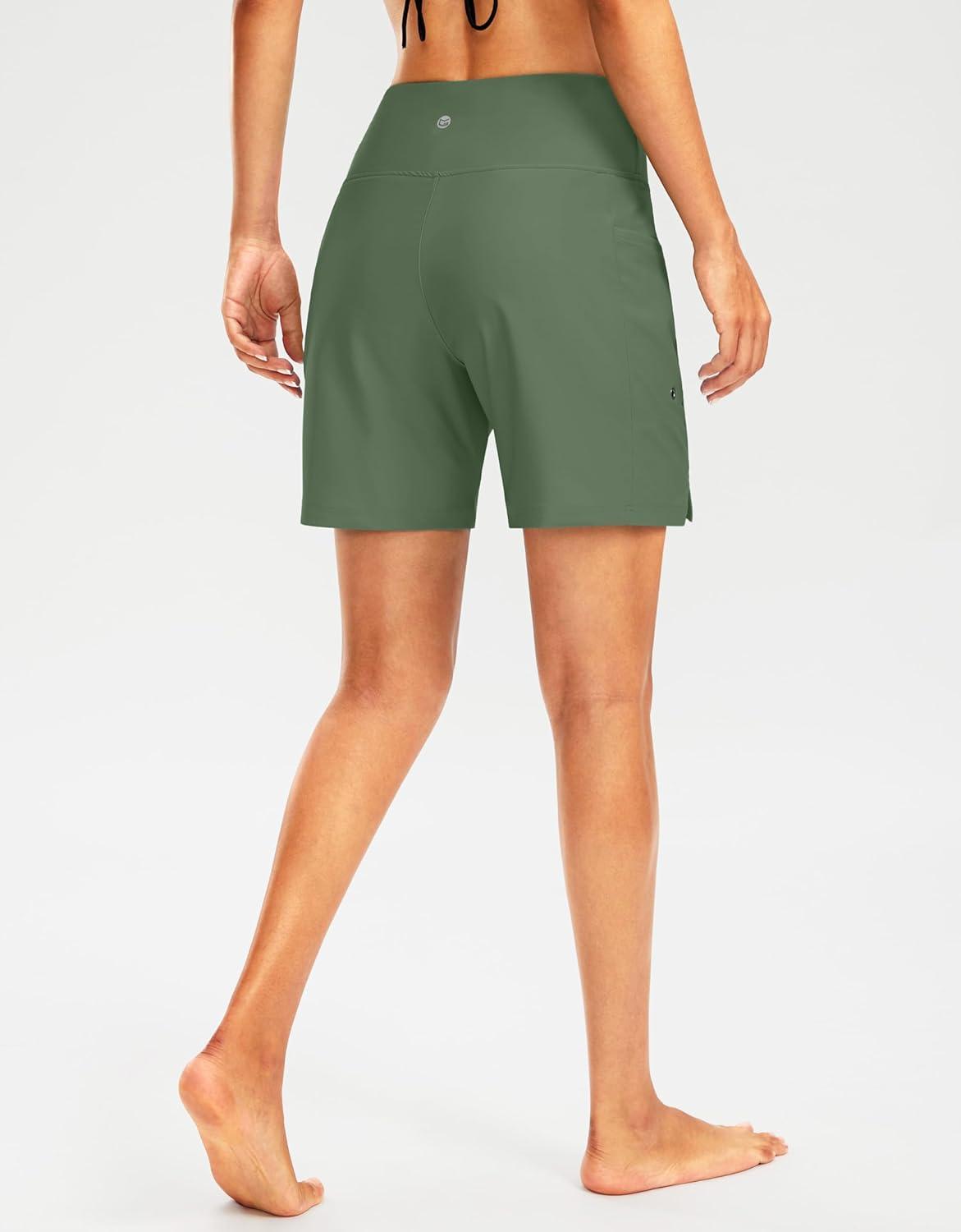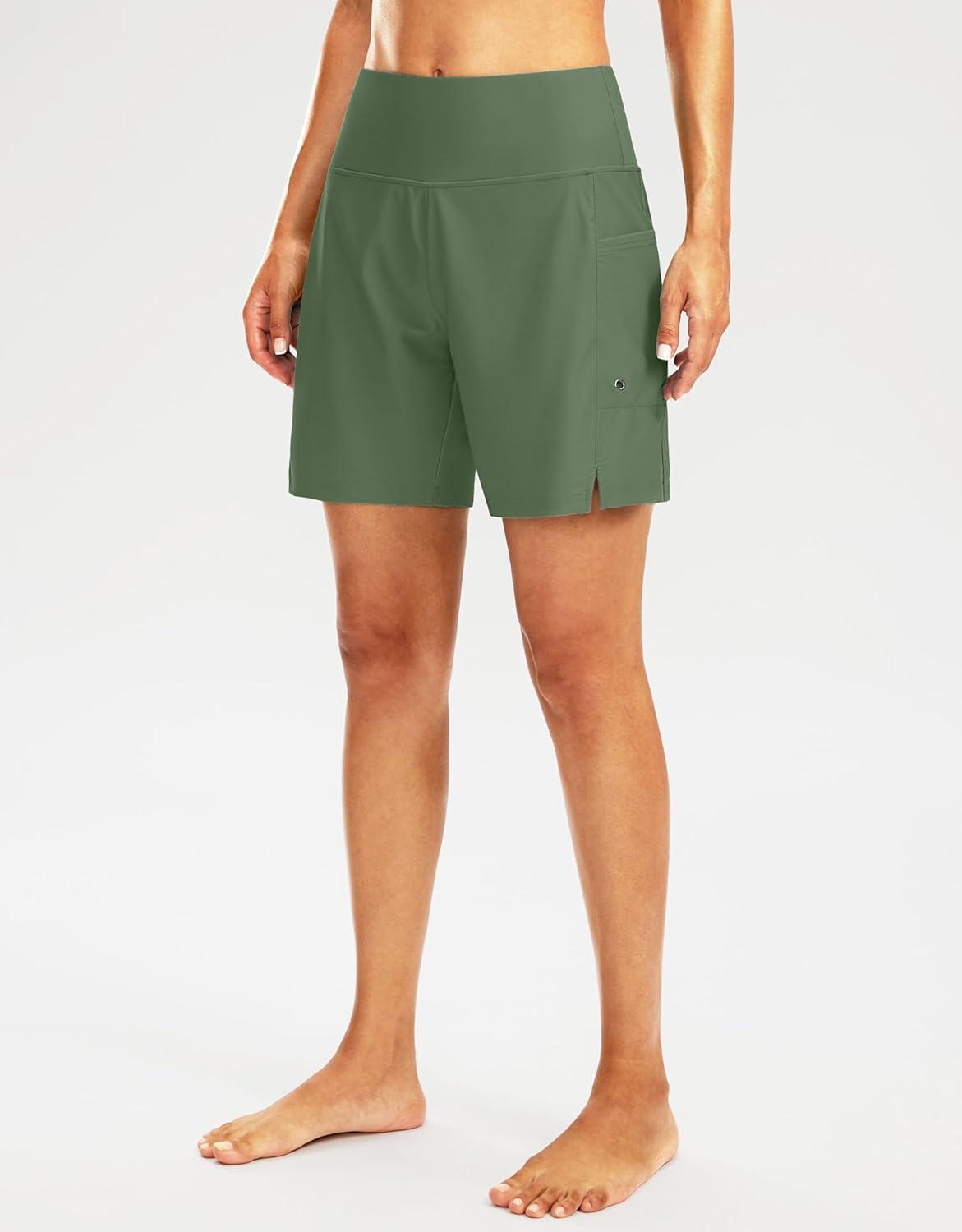 G Gradual Women’s 7″ Long Swim Board Shorts High Waisted Quick Dry Beach Swimming Shorts for Women with Liner Pockets(Sage)