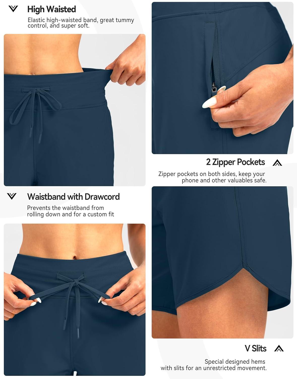 G Gradual Women’s 7″ Quick Dry High Waisted Swim Board Shorts with Zipper Pockets UPF 50+ Beach Shorts for Women with Liner(Blue)