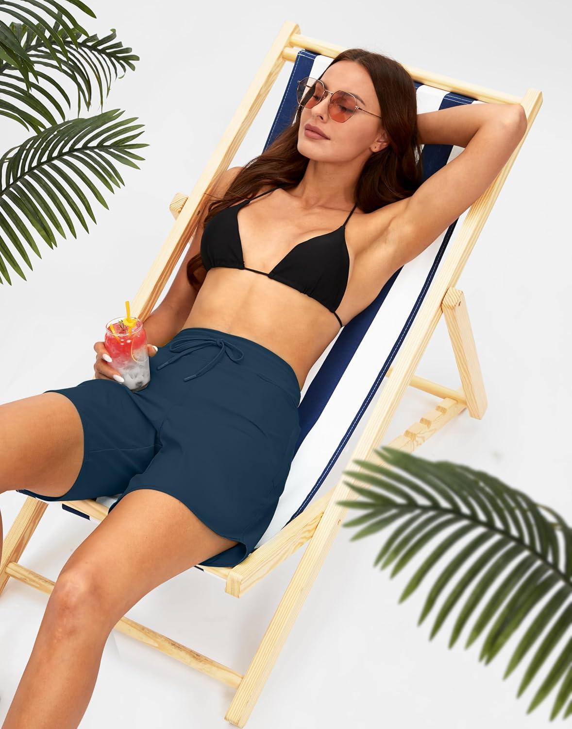imageG Gradual Womens 7 Quick Dry High Waisted Swim Board Shorts with Zipper Pockets UPF 50 Beach Shorts for Women with LinerBlue