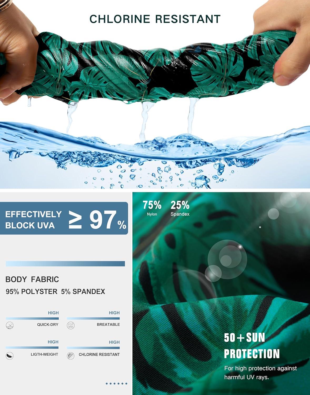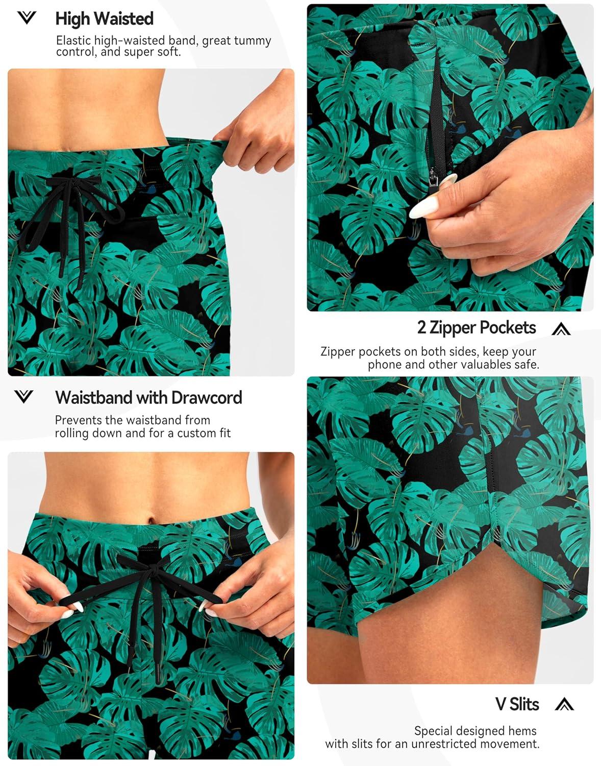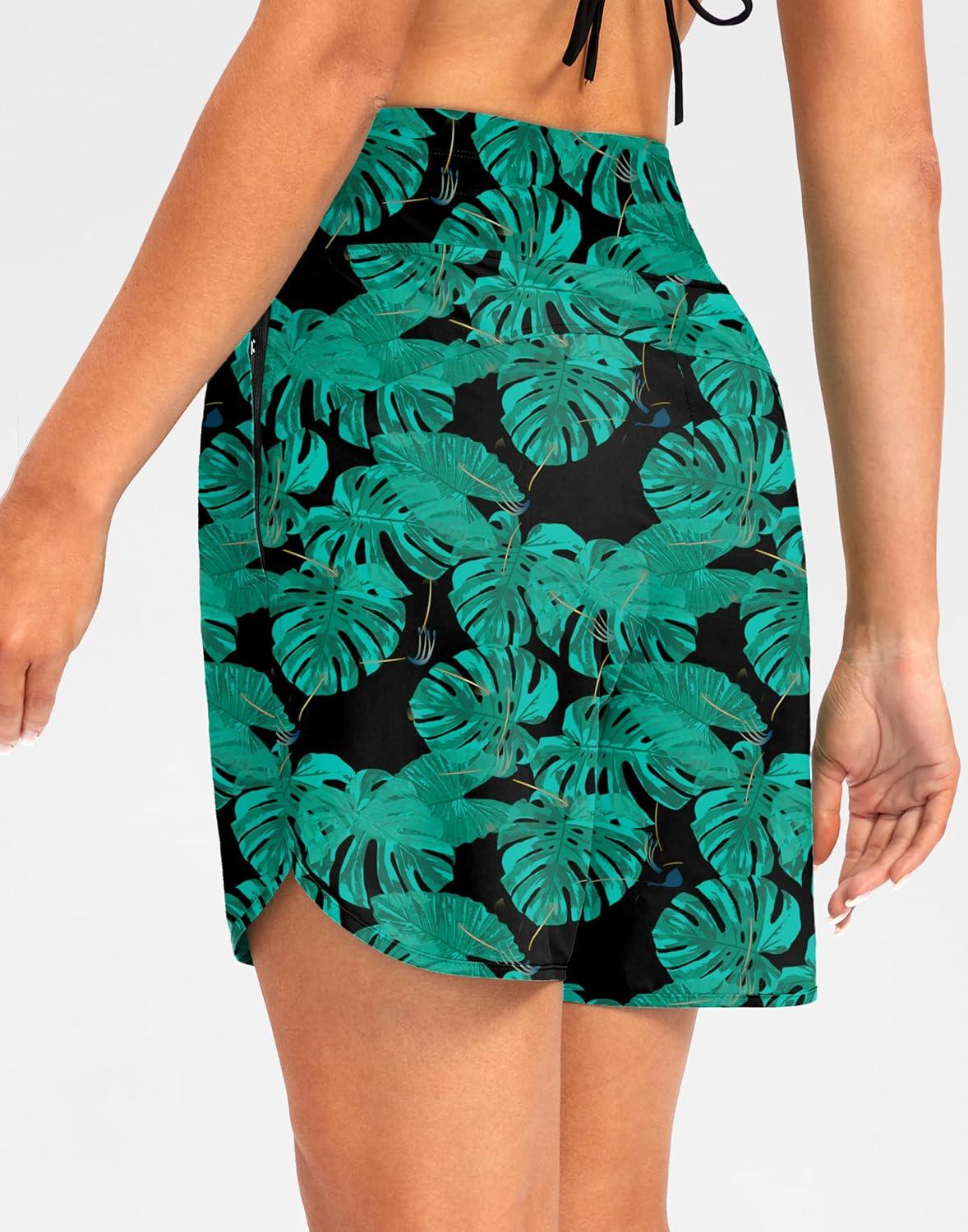 G Gradual Women’s 7″ Quick Dry High Waisted Swim Board Shorts with Zipper Pockets UPF 50+ Beach Shorts for Women with Liner(Leaf)