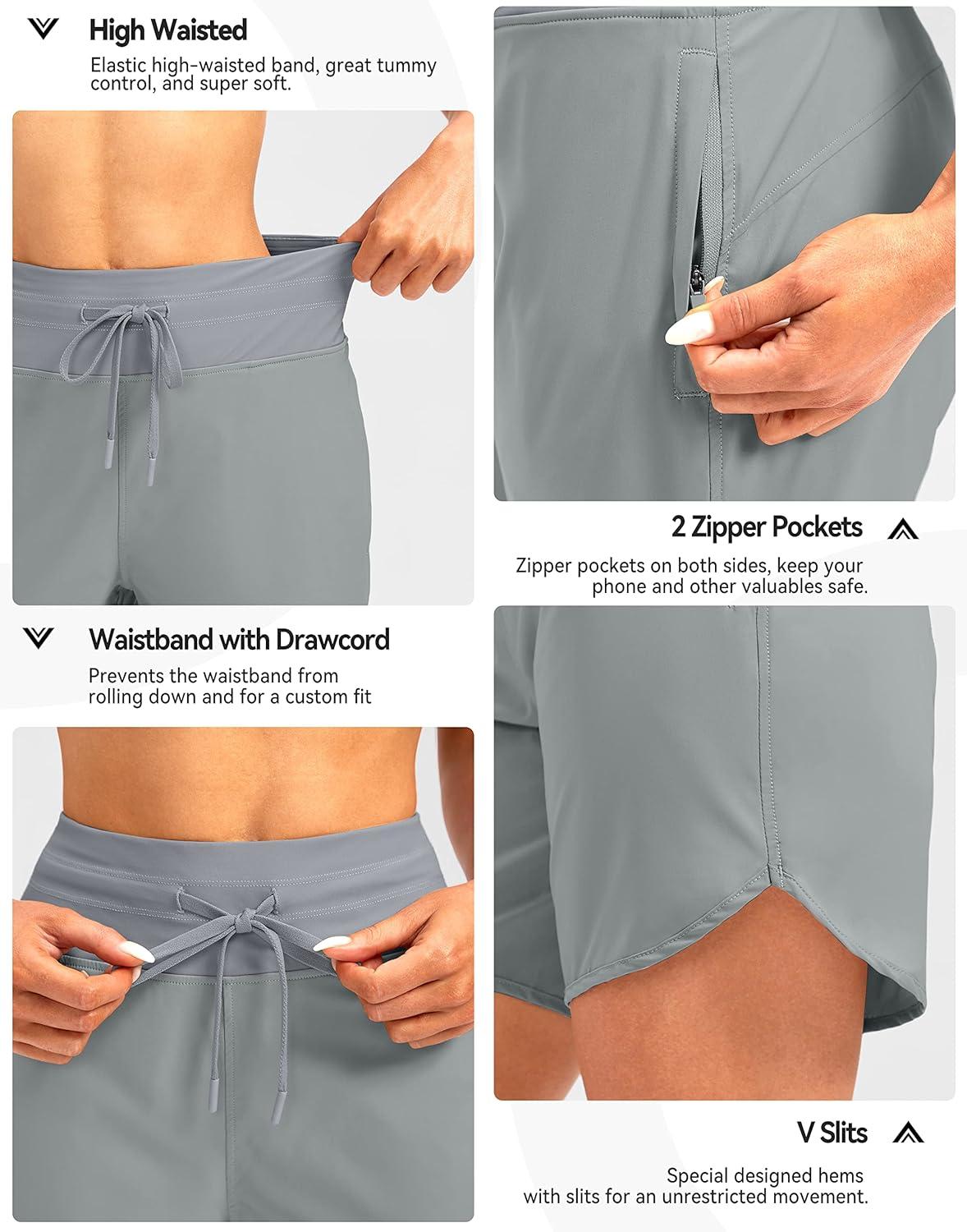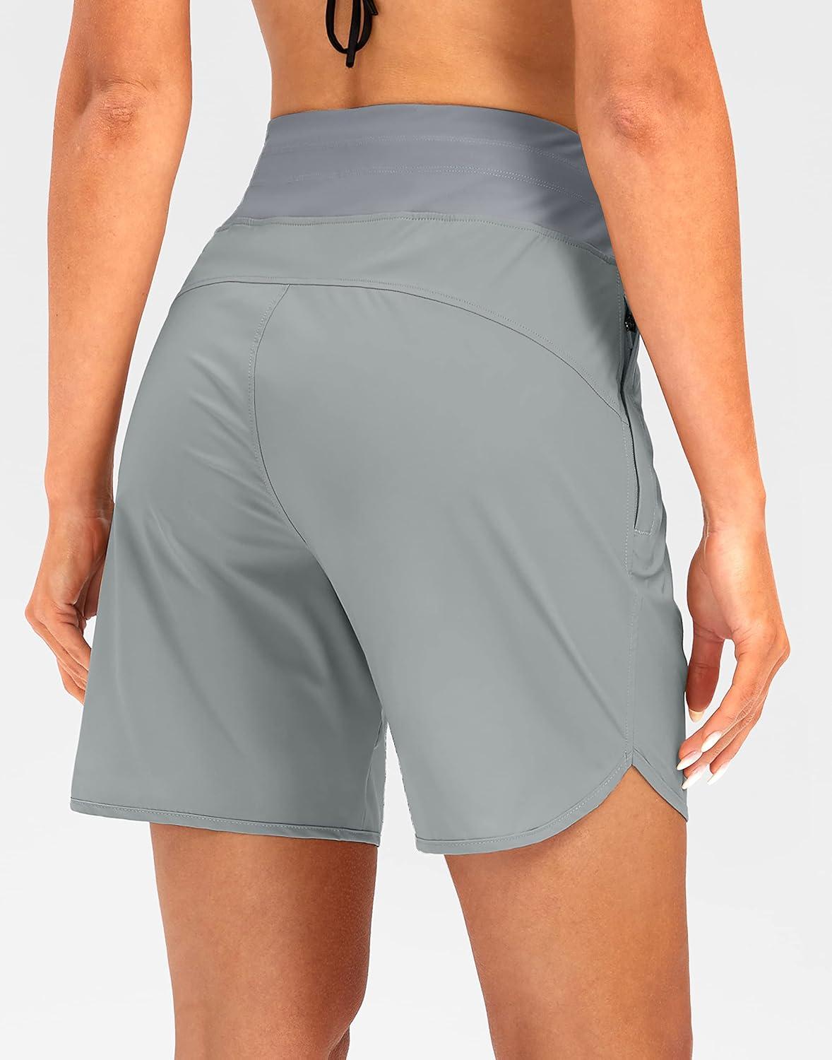 G Gradual Women’s 7″ Quick Dry High Waisted Swim Board Shorts with Zipper Pockets UPF 50+ Beach Shorts for Women with Liner(Light Grey)