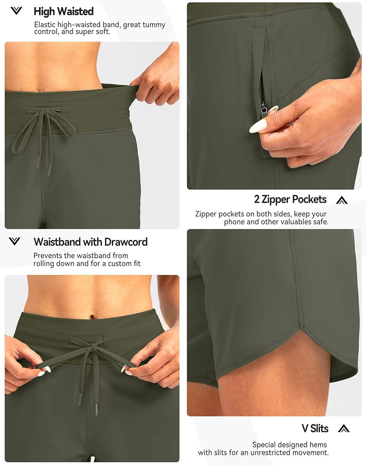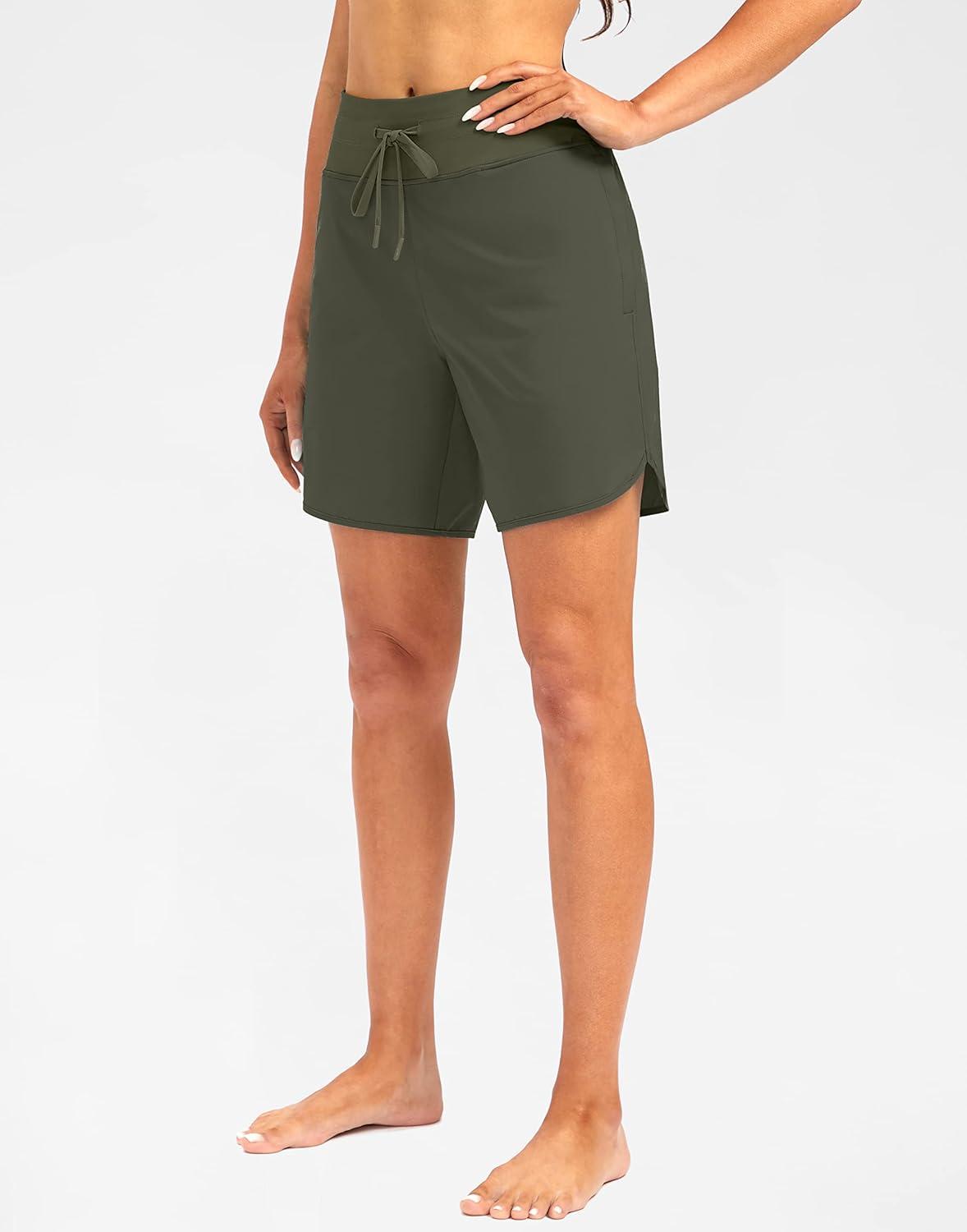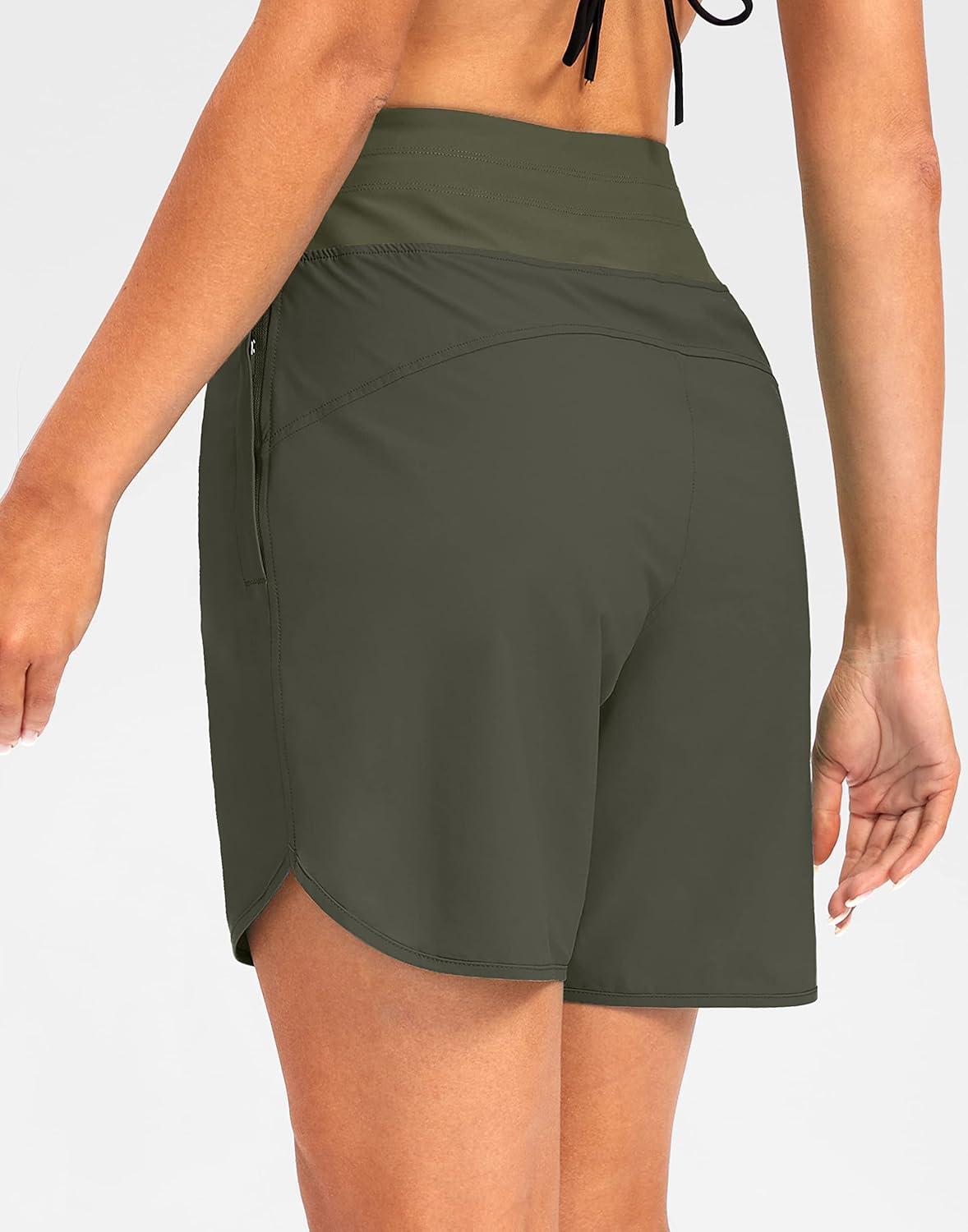G Gradual Women’s 7″ Quick Dry High Waisted Swim Board Shorts with Zipper Pockets UPF 50+ Beach Shorts for Women with Liner(Slate Green)