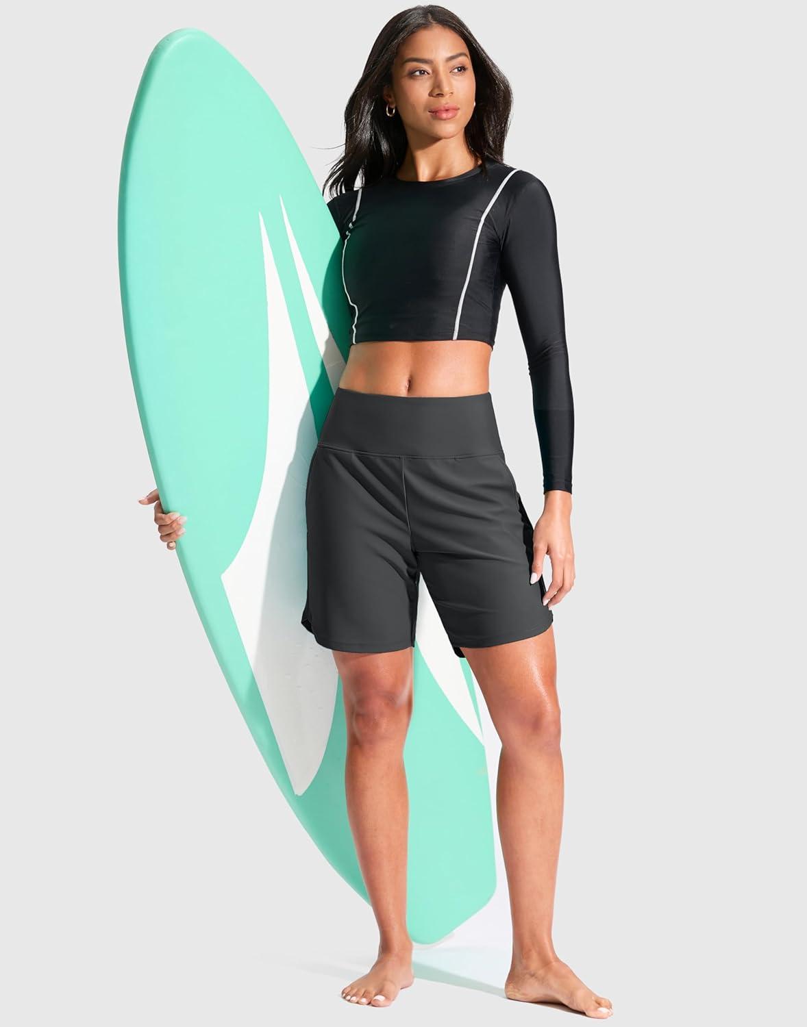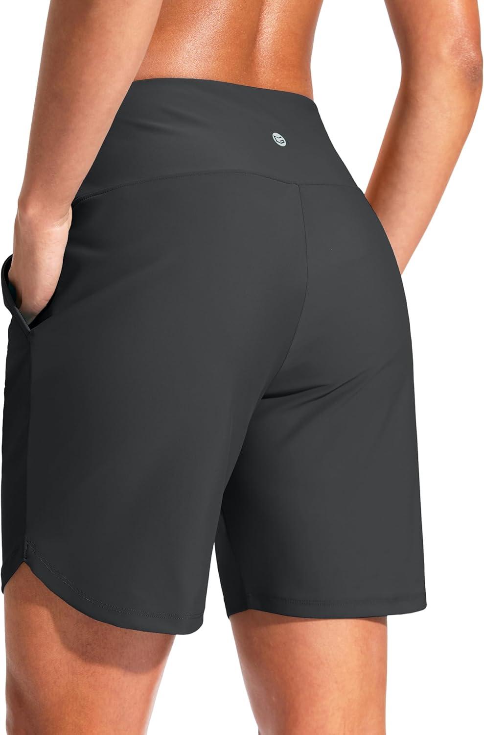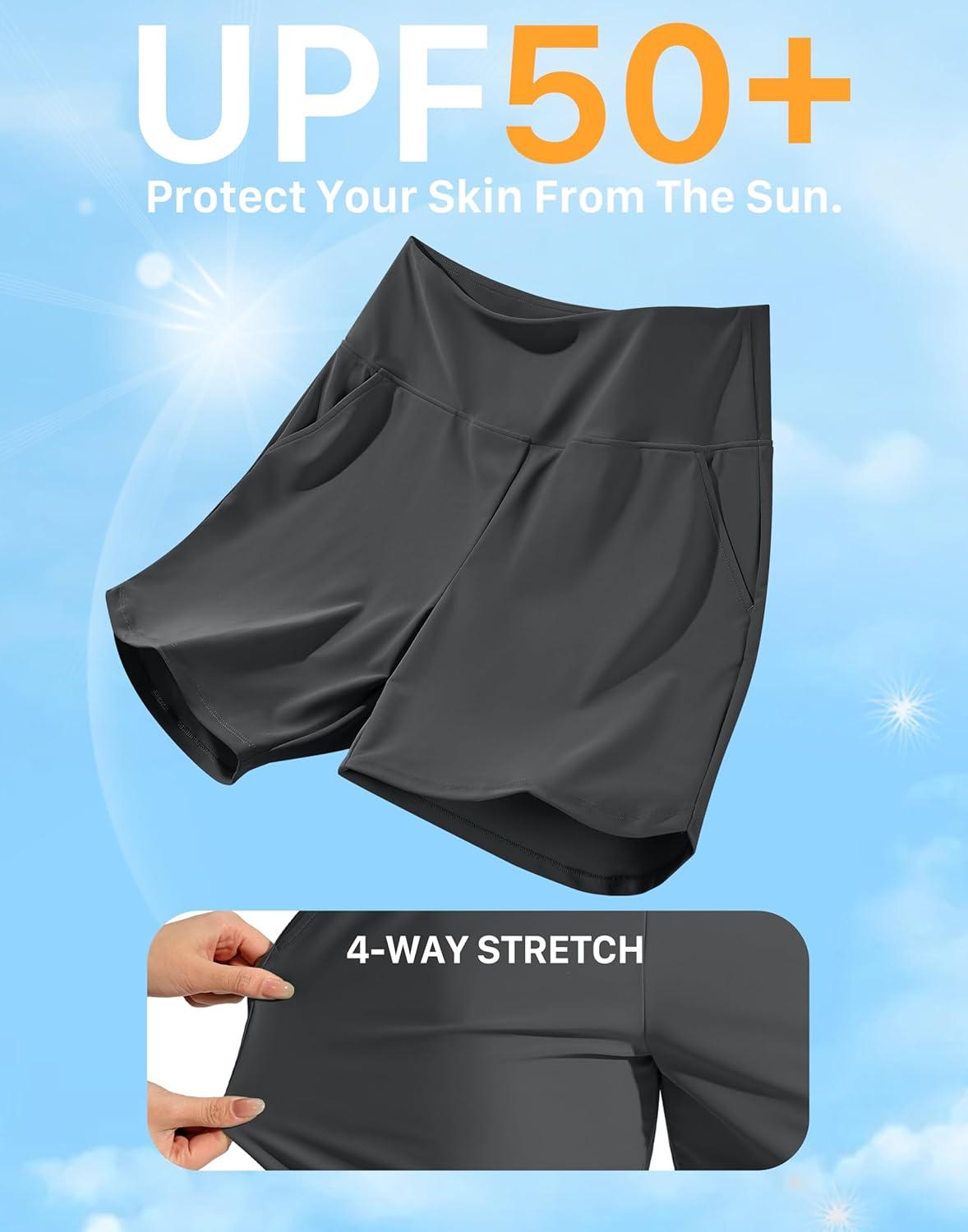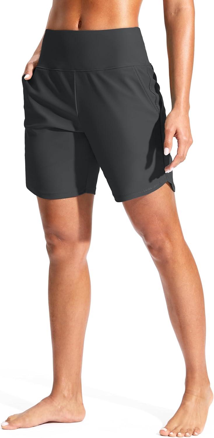 G Gradual Women’s 7″ Quick Dry Swim Board Shorts Swimming Bottoms High Waisted Beach Shorts for Women with Liner Pockets(Dark Grey)