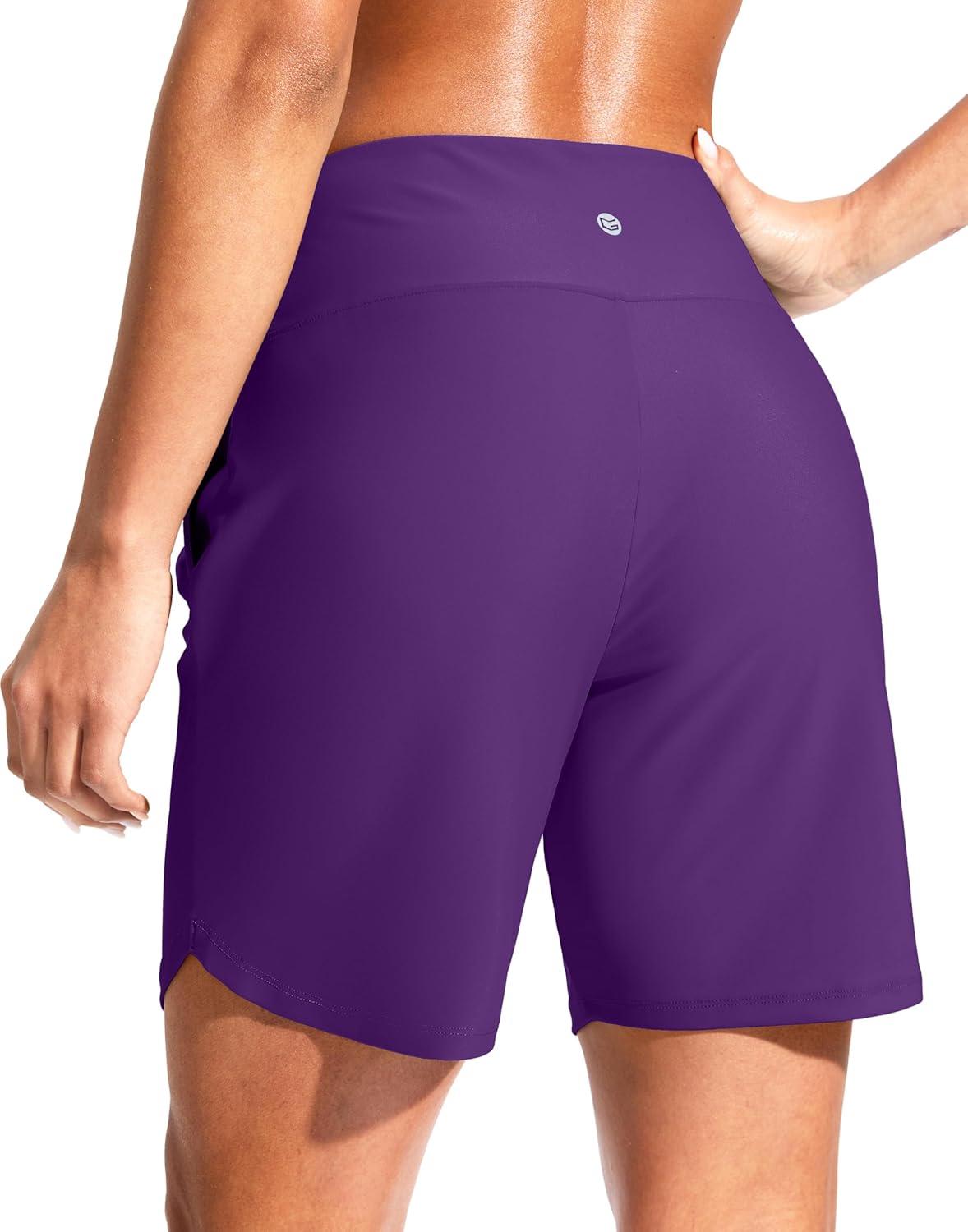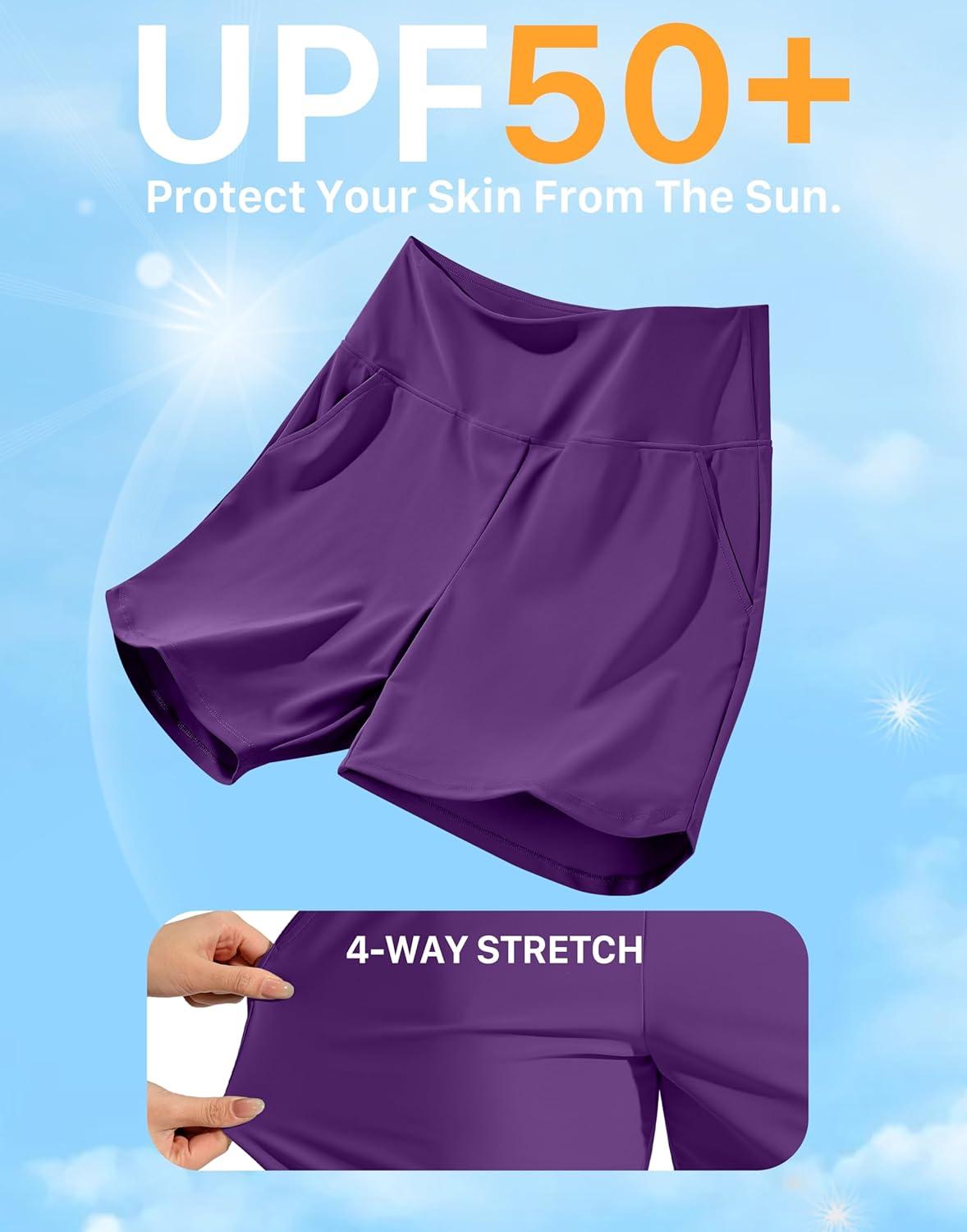 G Gradual Women’s 7″ Quick Dry Swim Board Shorts Swimming Bottoms High Waisted Beach Shorts for Women with Liner Pockets(Purple)