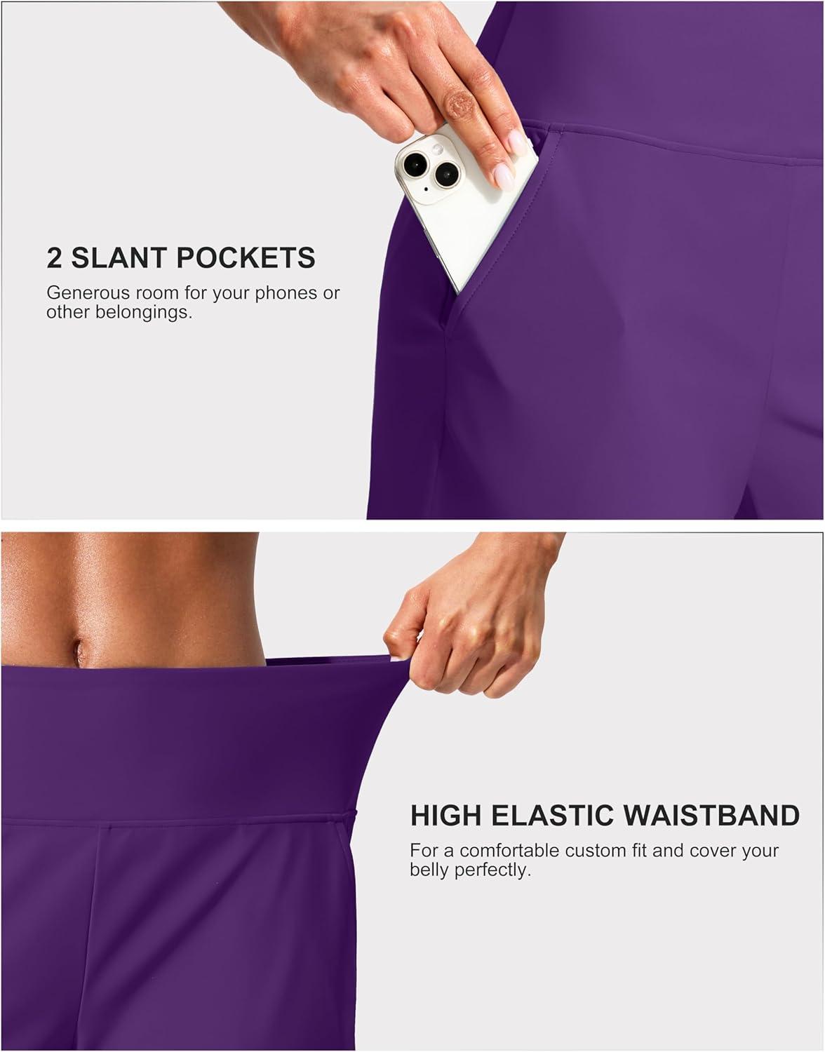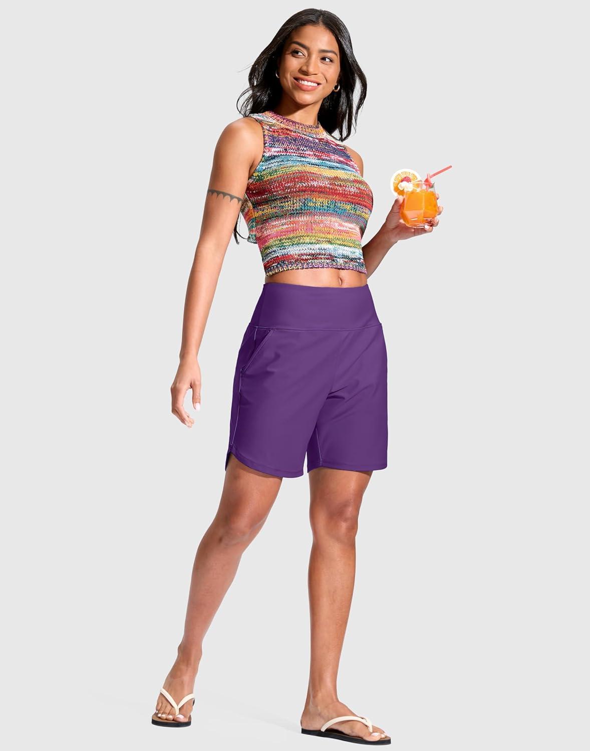 G Gradual Women's 7" Quick Dry Swim Board Shorts Swimming Bottoms High Waisted Beach Shorts for Women with Liner Pockets(Purple)