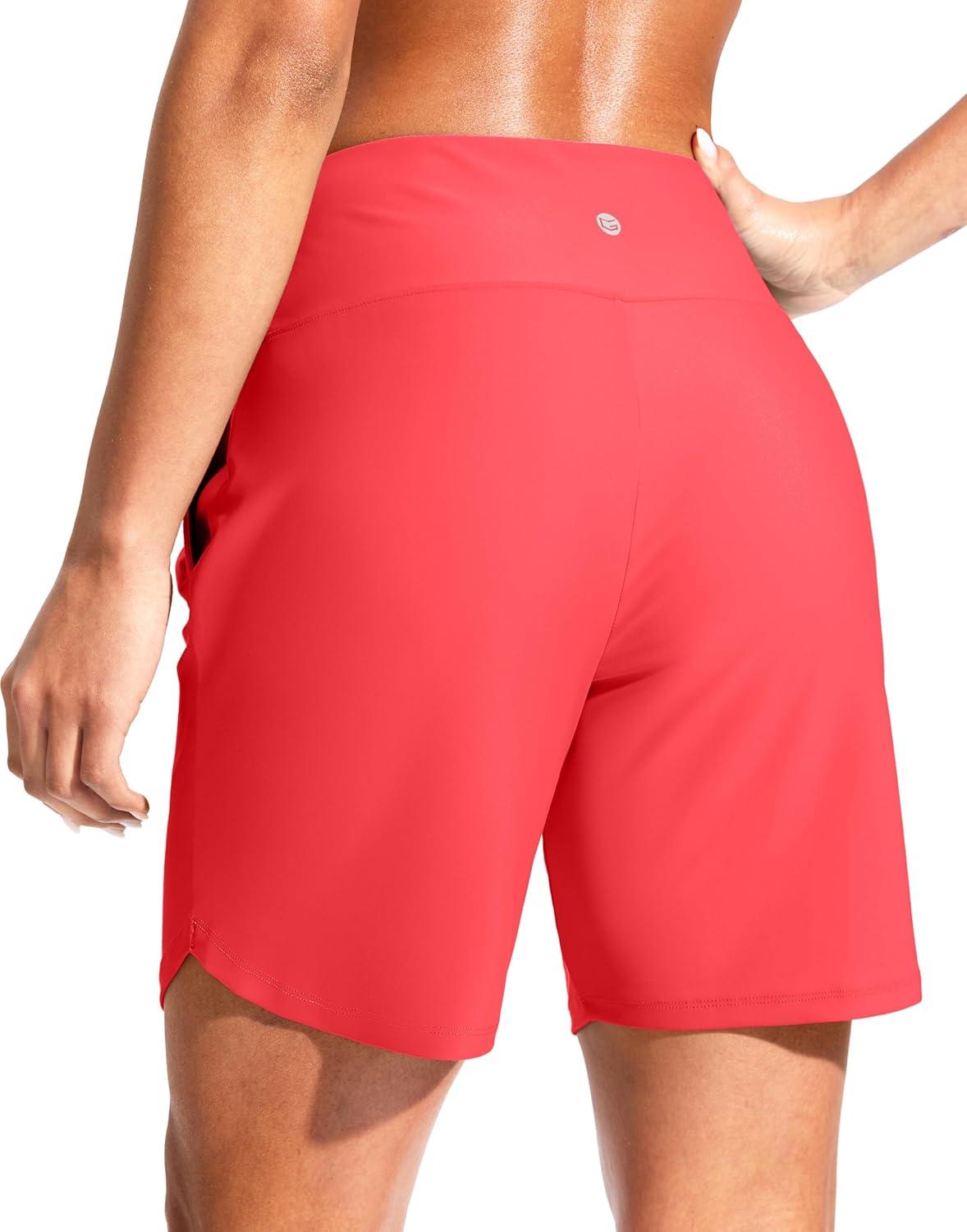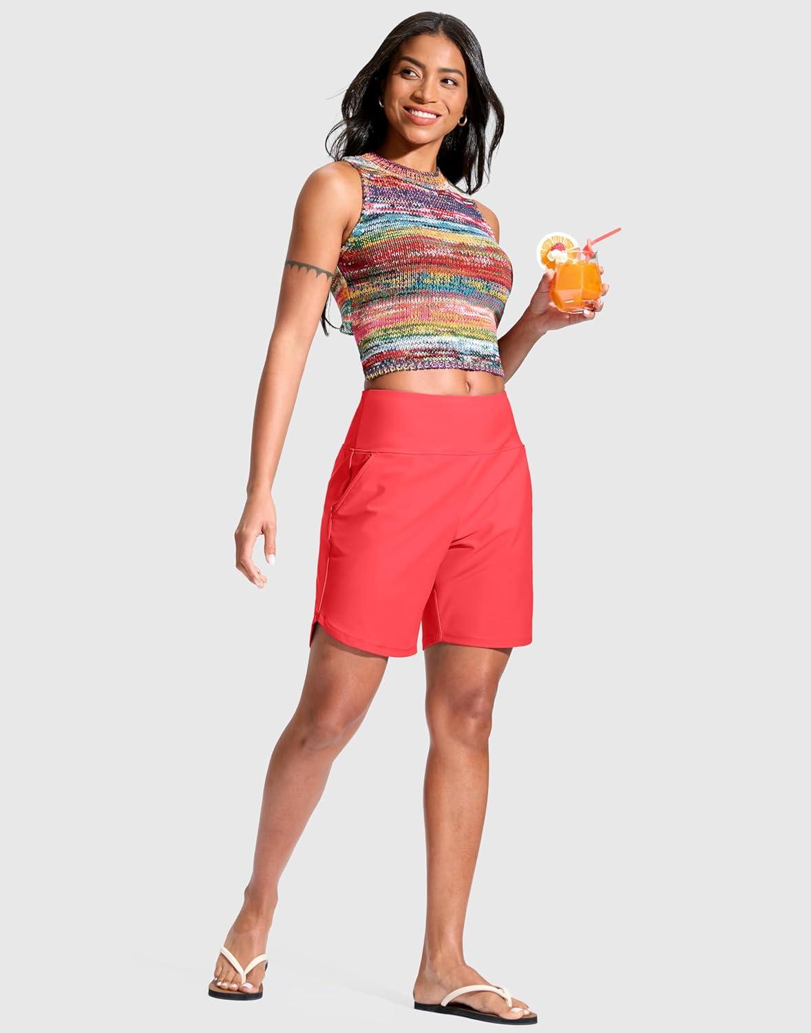 imageG Gradual Womens 7quot Quick Dry Swim Board Shorts Swimming Bottoms High Waisted Beach Shorts for Women with Liner PocketsTomato