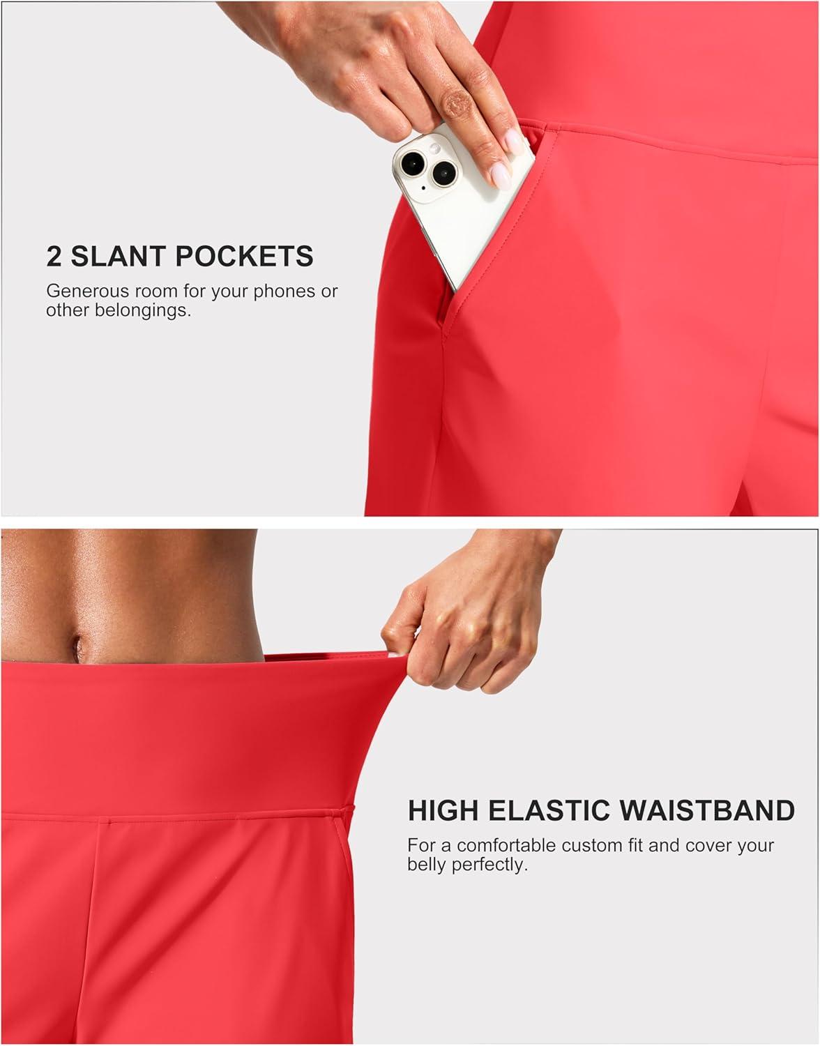 G Gradual Women’s 7″ Quick Dry Swim Board Shorts Swimming Bottoms High Waisted Beach Shorts for Women with Liner Pockets(Tomato)
