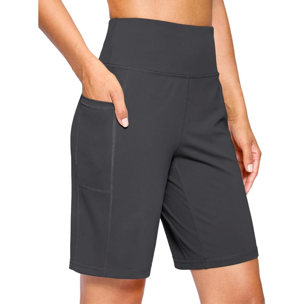 G Gradual Women’s 9″ Bermuda Long Shorts with Pockets High Waisted Athletic Knee Length Shorts for Women Walking Workout(Charcoal)