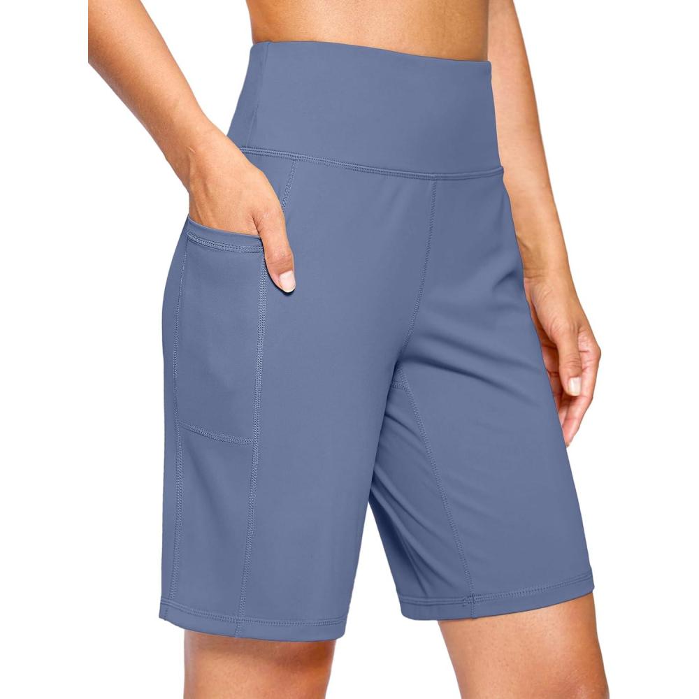 G Gradual Women's 9" Bermuda Long Shorts with Pockets High Waisted Athletic Knee Length Shorts for Women Walking Workout(Light Blue)