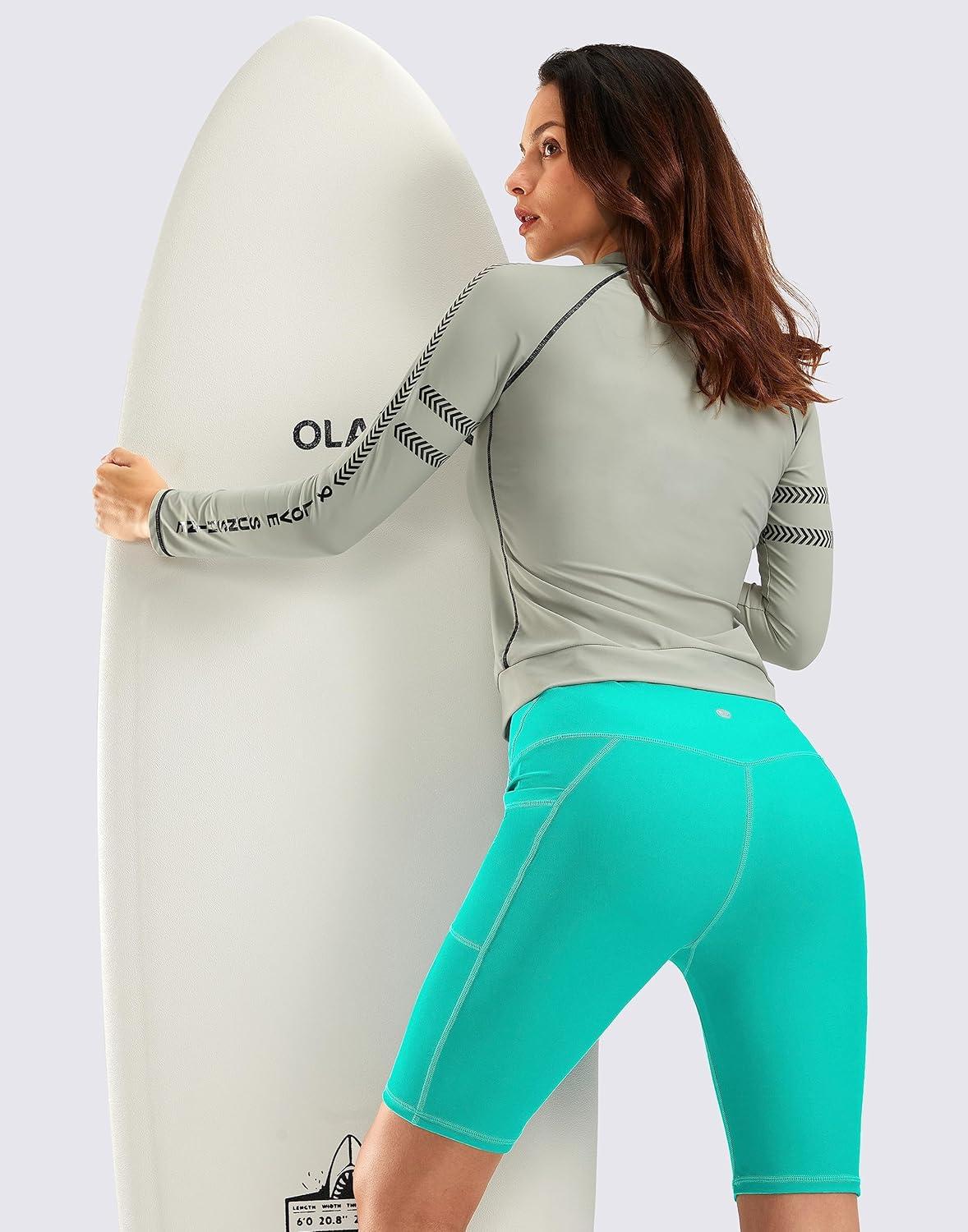 G Gradual Women’s 9″ High Waisted Swim Board Shorts Tummy Control Swimsuit Bottoms for Women with Liner Pockets(Cyan)