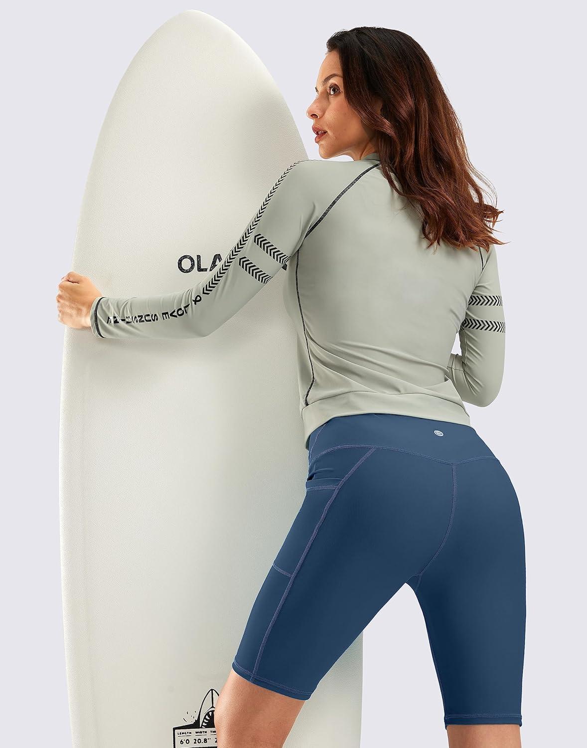 G Gradual Women’s 9″ High Waisted Swim Board Shorts Tummy Control Swimsuit Bottoms for Women with Liner Pockets(Deep Blue)