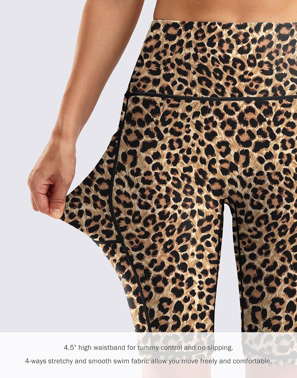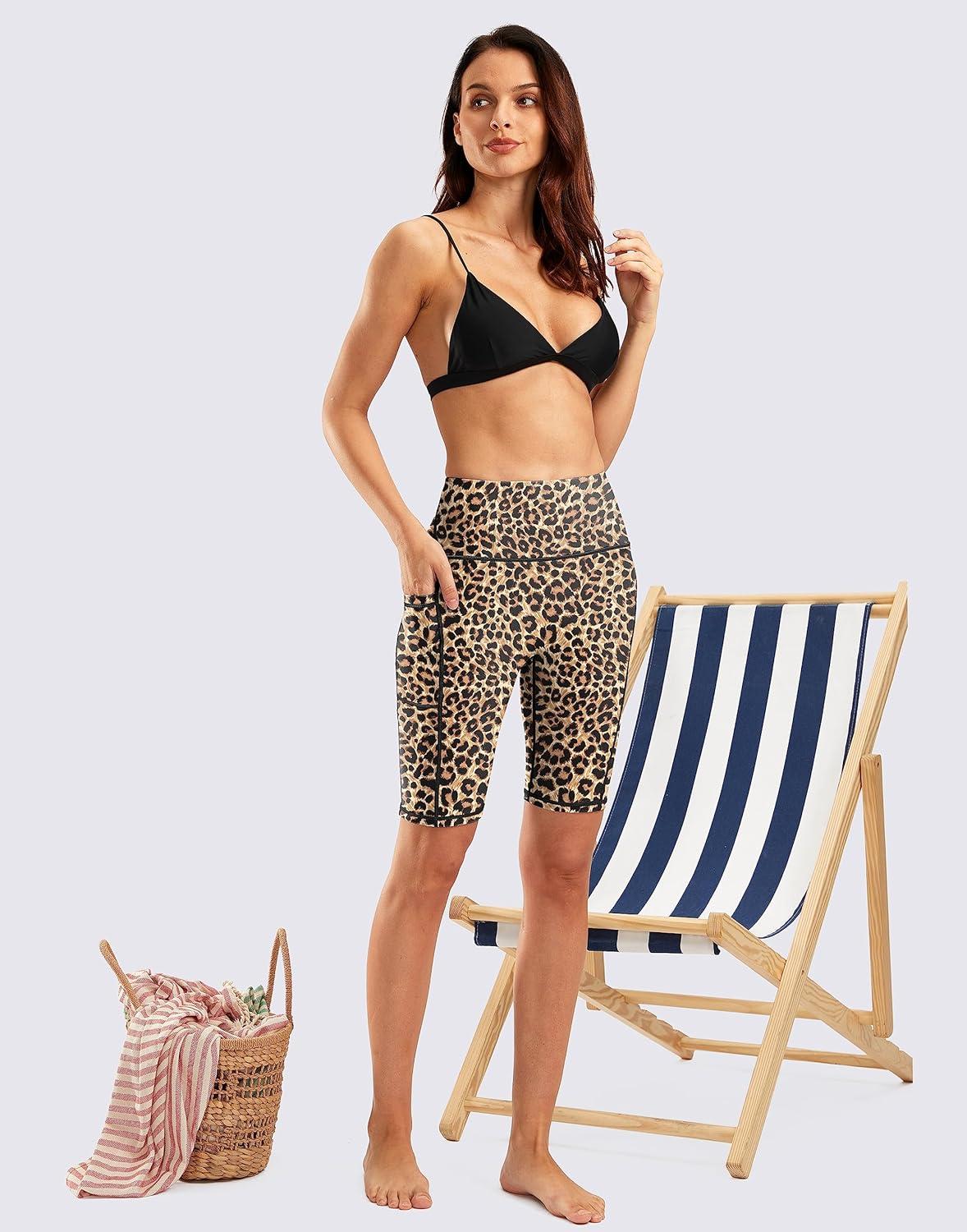 G Gradual Women's 9" High Waisted Swim Board Shorts Tummy Control Swimsuit Bottoms for Women with Liner Pockets(Leopard)