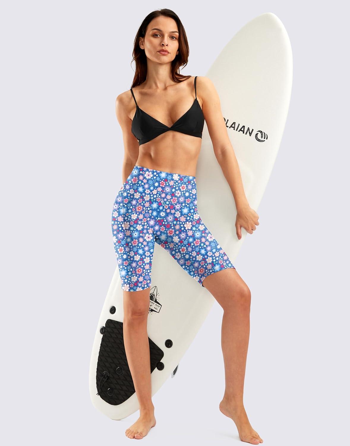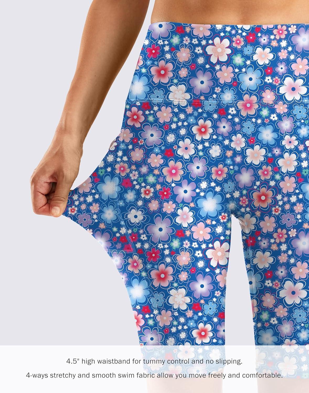 G Gradual Women’s 9″ High Waisted Swim Board Shorts Tummy Control Swimsuit Bottoms for Women with Liner Pockets(Sun Flower)