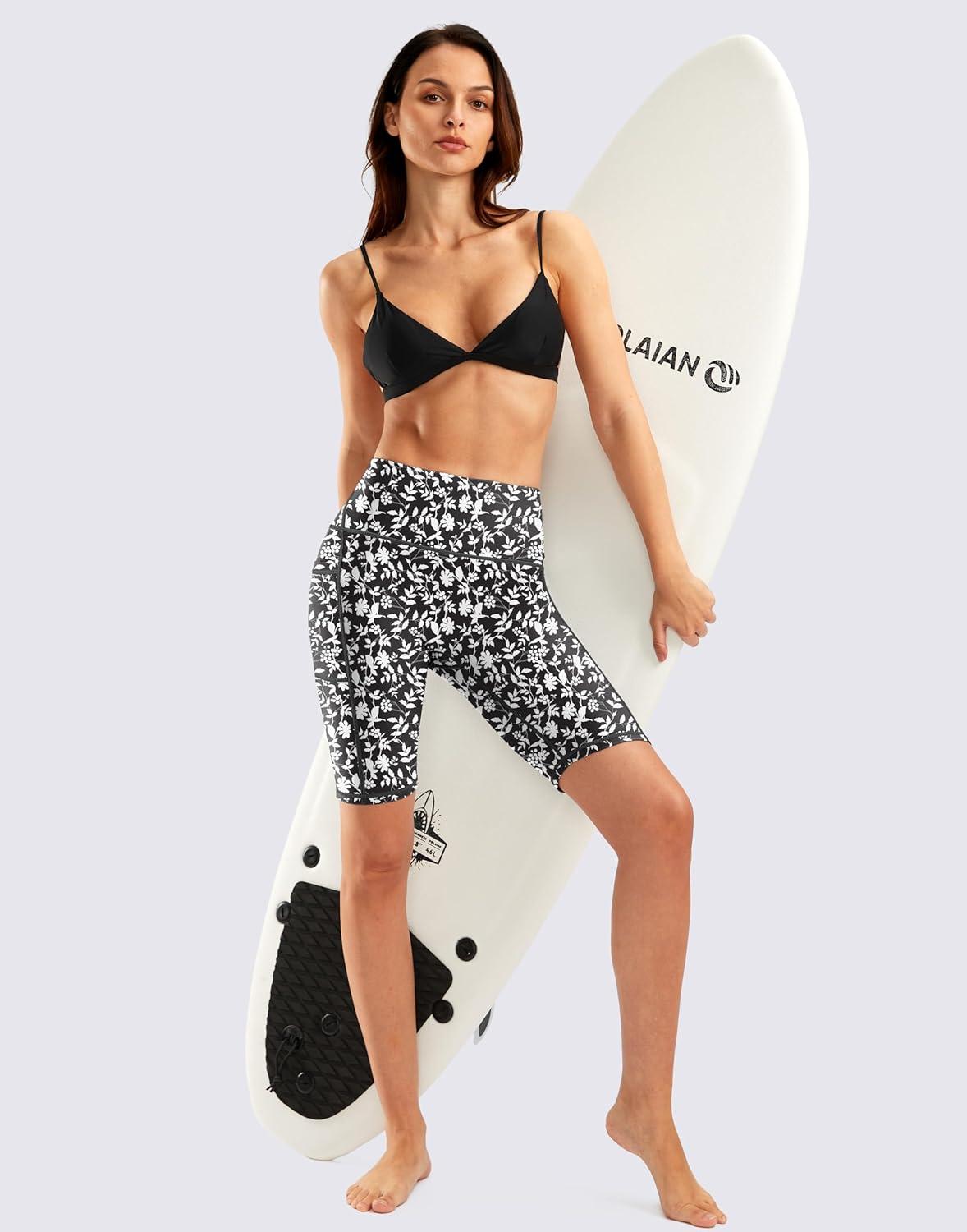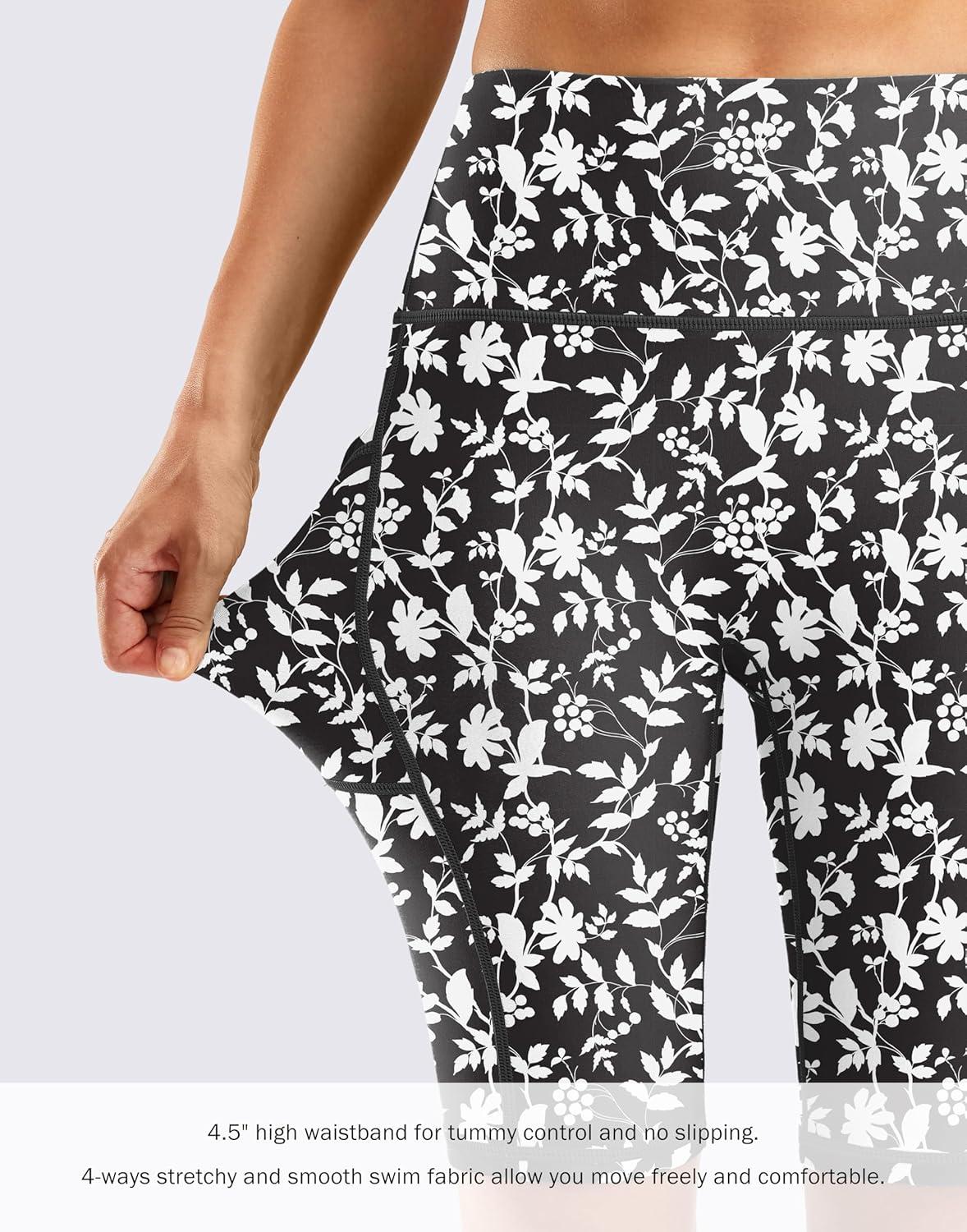 G Gradual Women’s 9″ High Waisted Swim Board Shorts Tummy Control Swimsuit Bottoms for Women with Liner Pockets(White Flower)