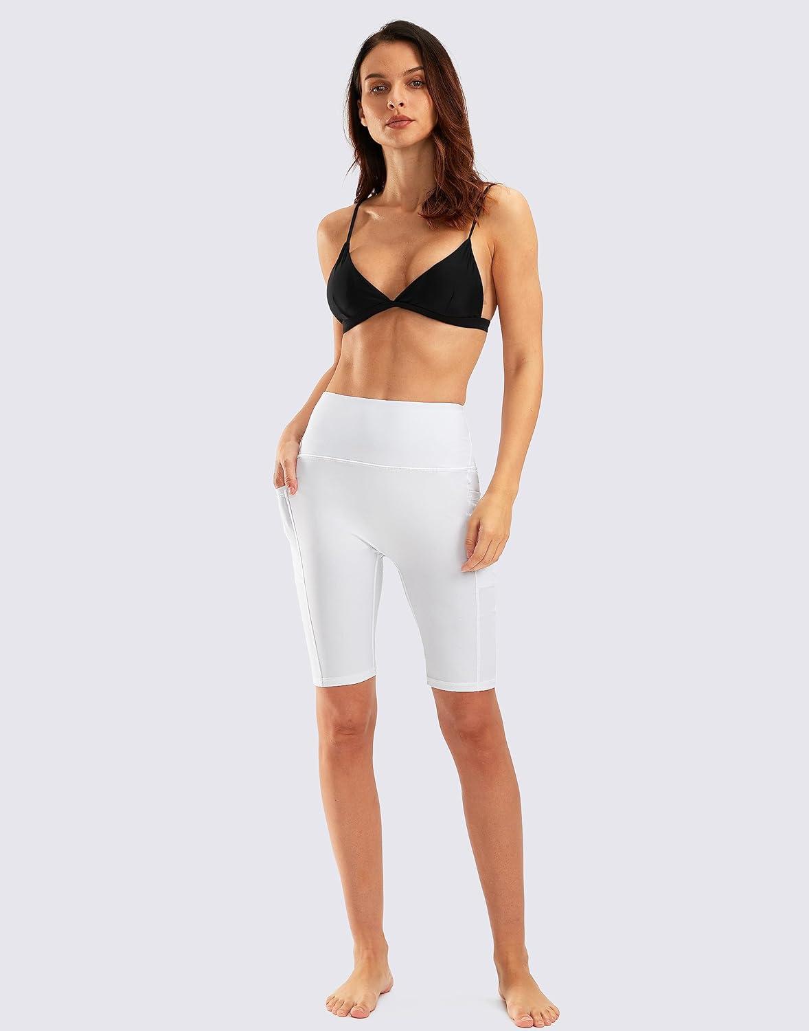 G Gradual Women’s 9″ High Waisted Swim Board Shorts Tummy Control Swimsuit Bottoms for Women with Liner Pockets(White)