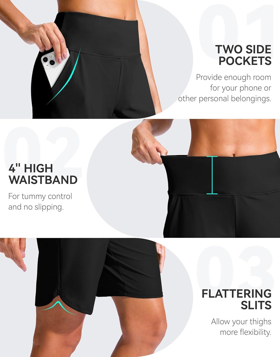 imageG Gradual Womens 9 Long Swim Board Shorts High Waisted Quick Dry Beach Swimming Shorts for Women with Pockets LinerBlack