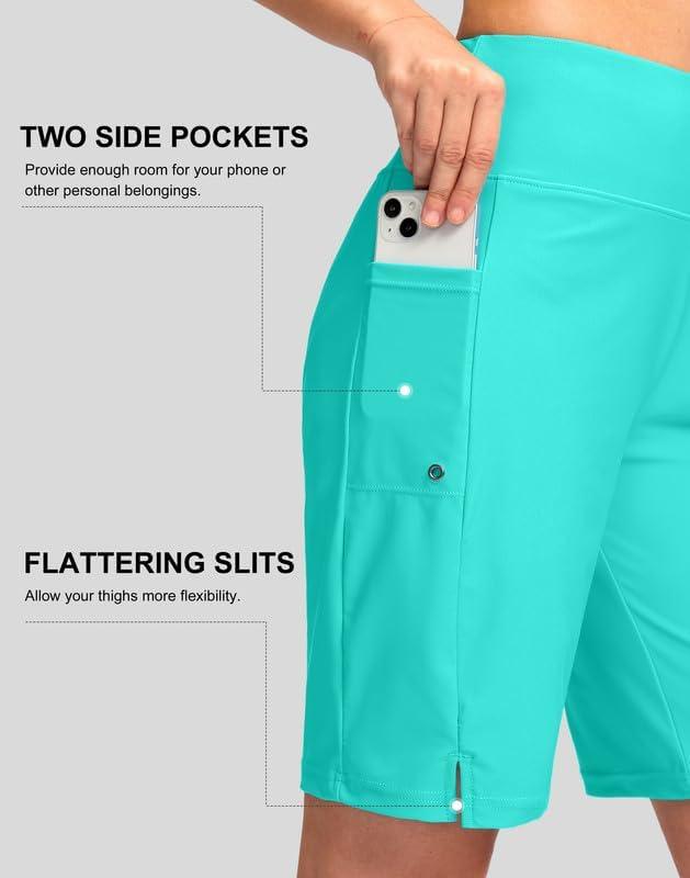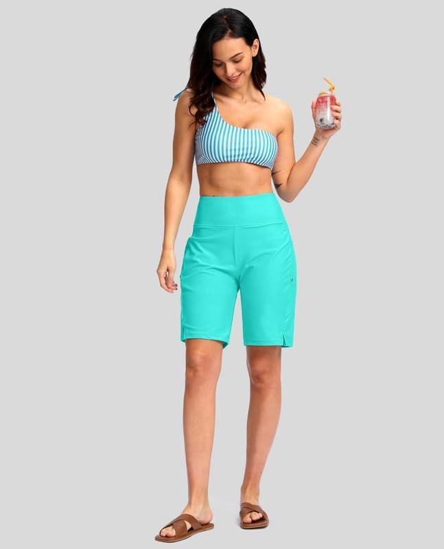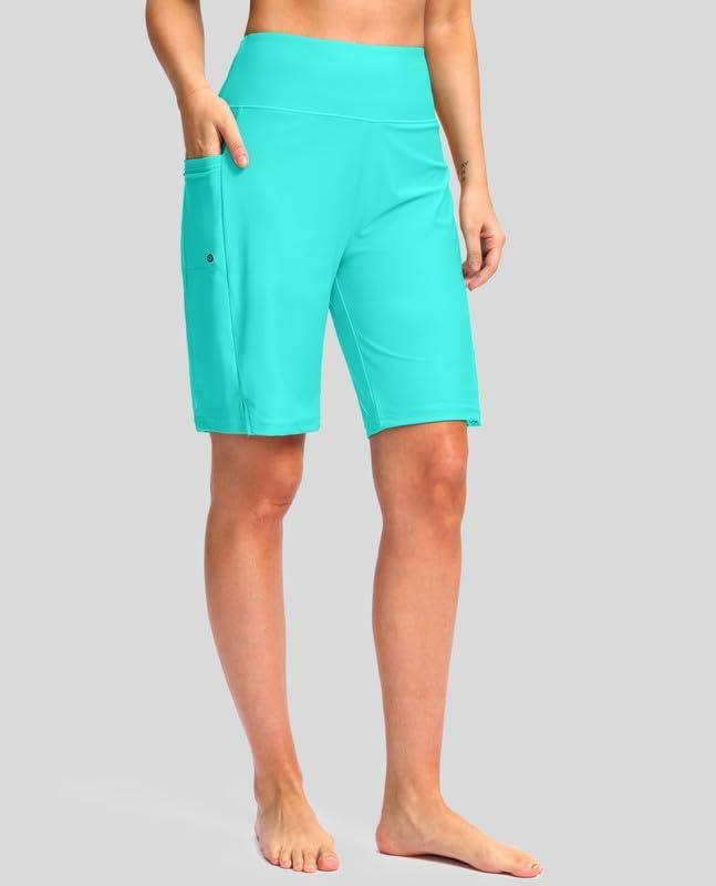 G Gradual Women’s 9″ Long Swim Board Shorts with Pockets High Waisted Knee Length Beach Swimming Shorts for Women with Liner(Cyan)