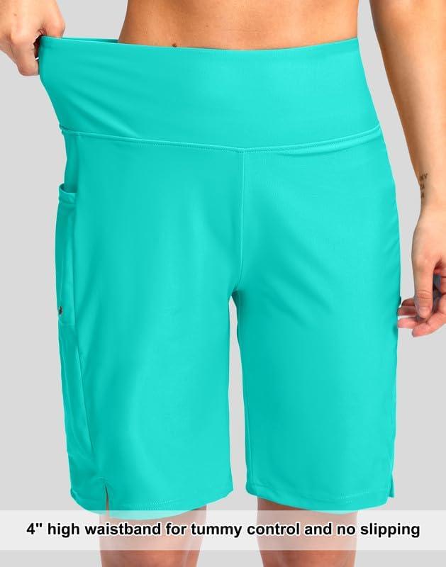 G Gradual Women's 9" Long Swim Board Shorts with Pockets High Waisted Knee Length Beach Swimming Shorts for Women with Liner(Cyan)