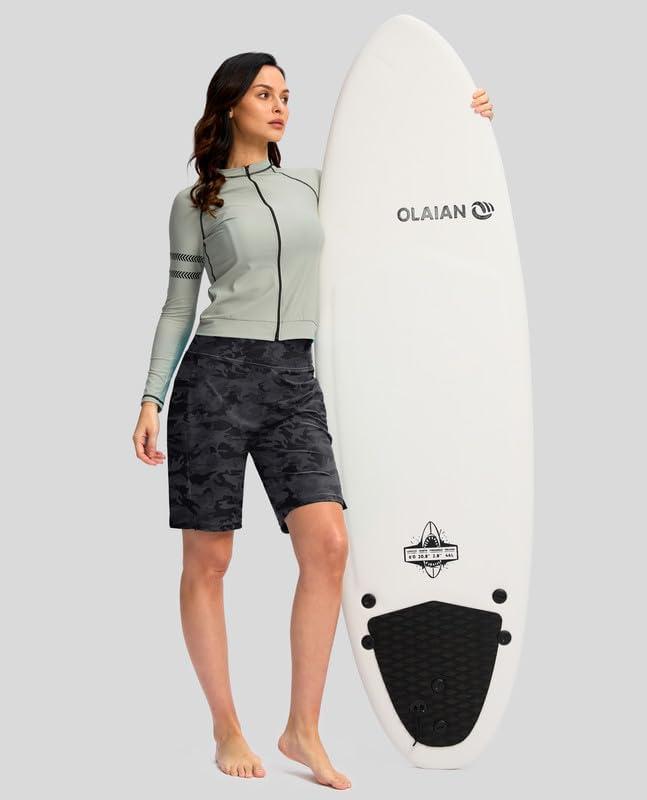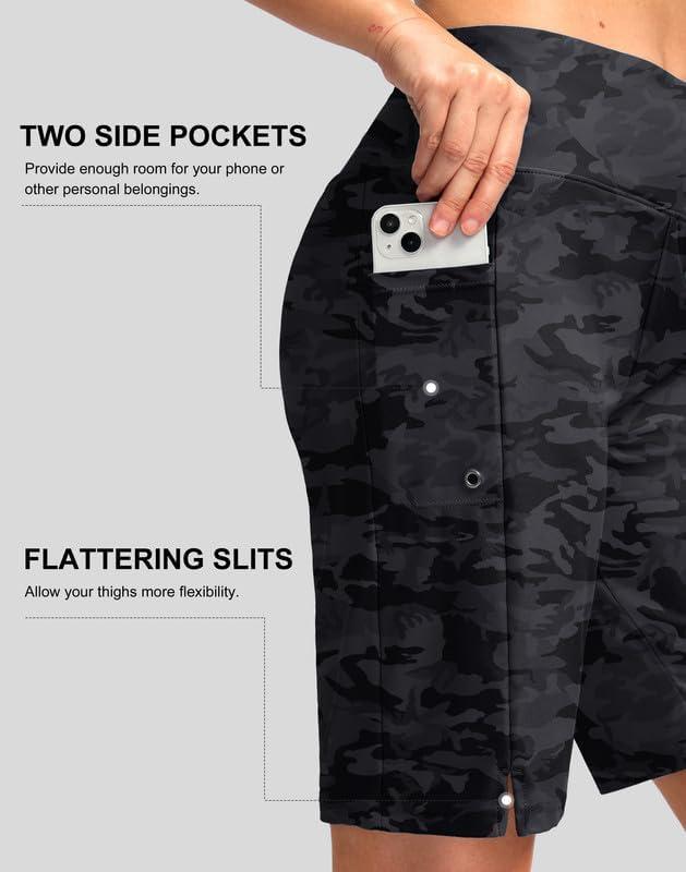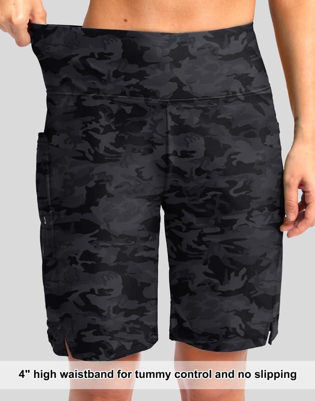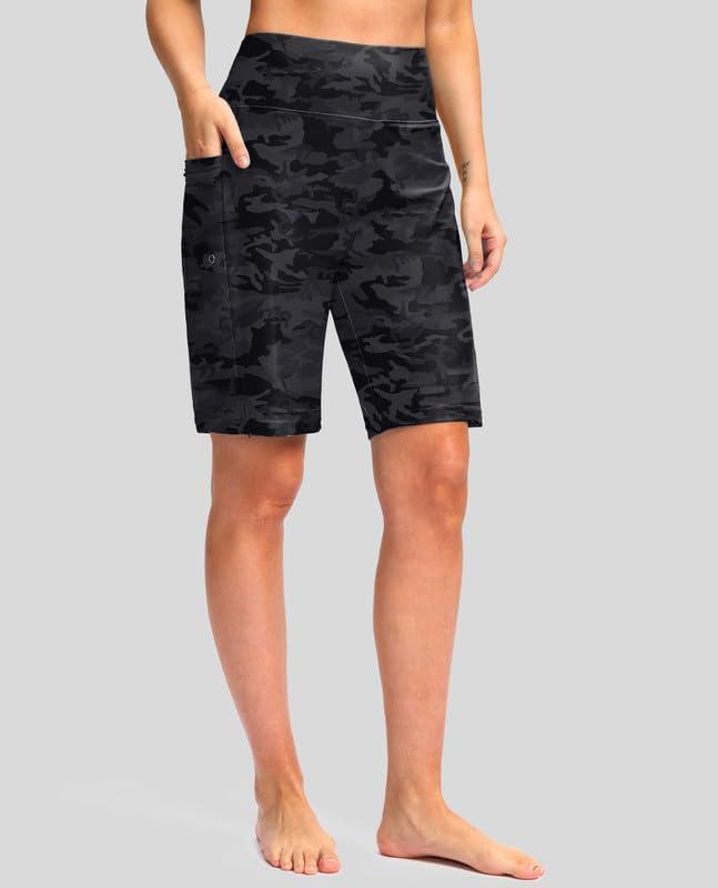 G Gradual Women’s 9″ Long Swim Board Shorts with Pockets High Waisted Knee Length Beach Swimming Shorts for Women with Liner(Grey Camo)