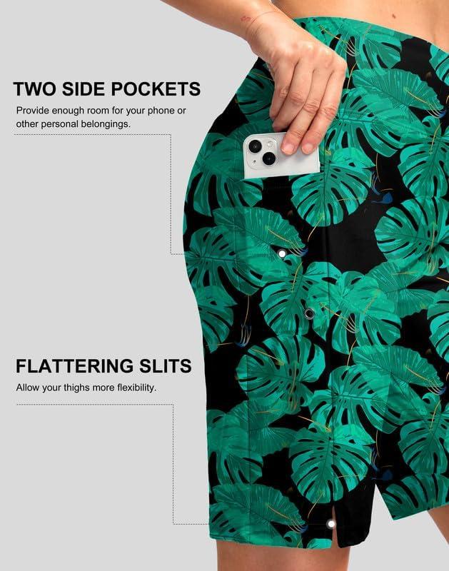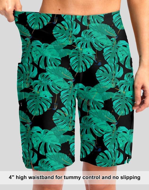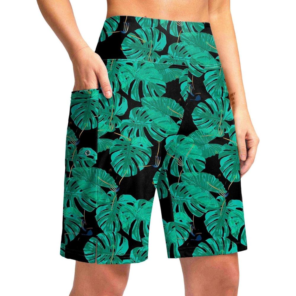G Gradual Women’s 9″ Long Swim Board Shorts with Pockets High Waisted Knee Length Beach Swimming Shorts for Women with Liner(Leaf)