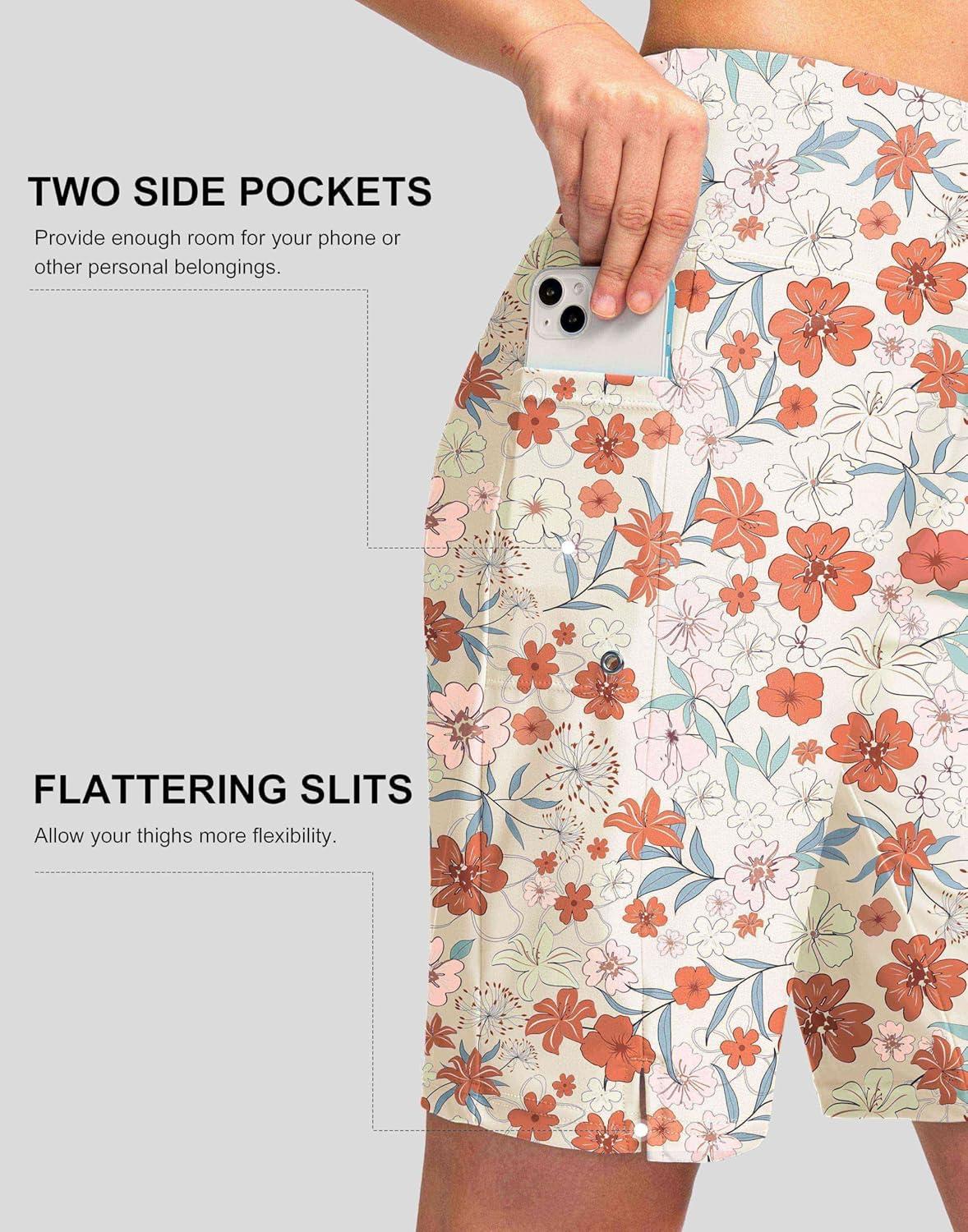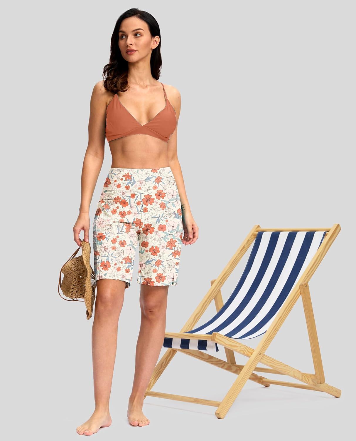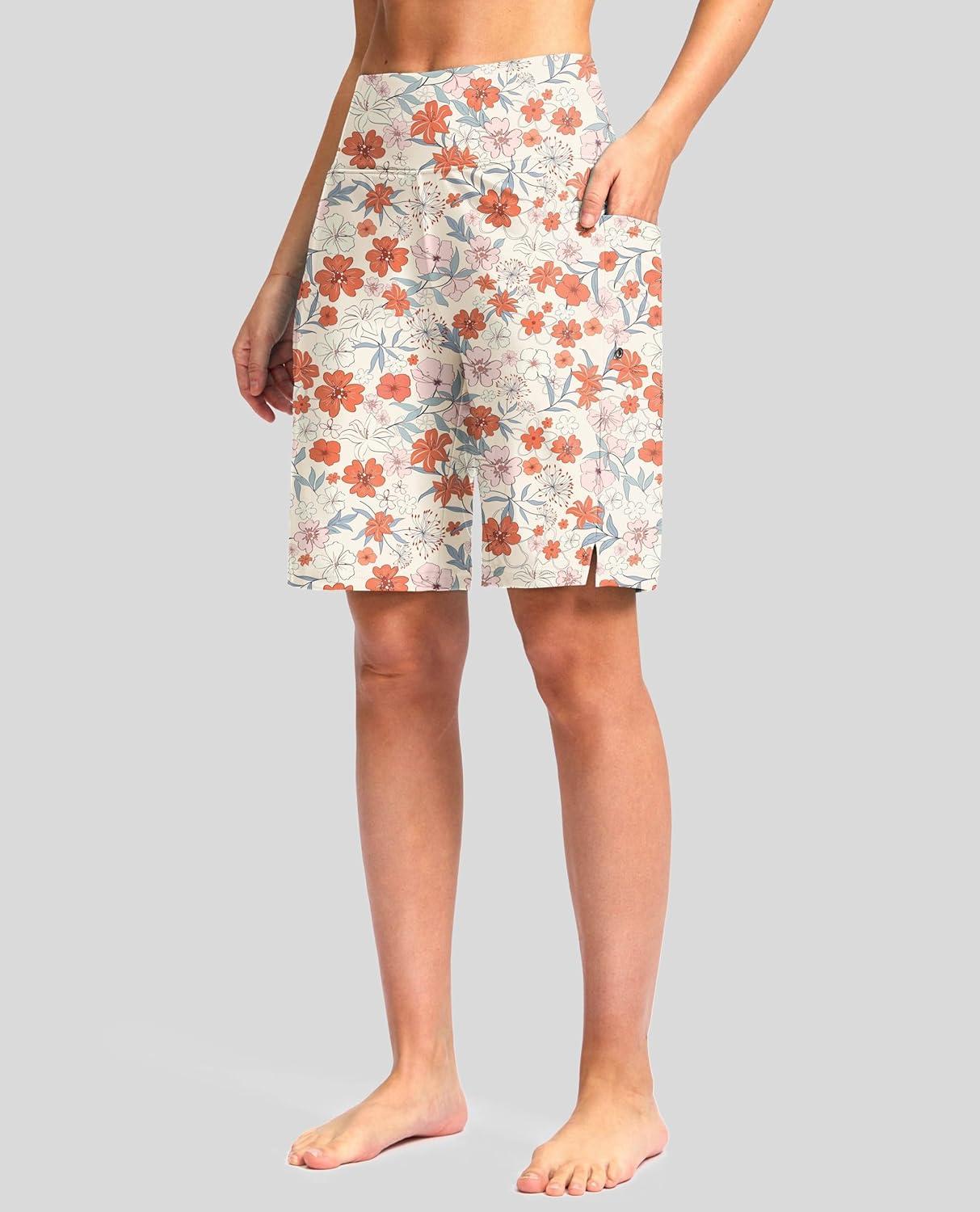 G Gradual Women’s 9″ Long Swim Board Shorts with Pockets High Waisted Knee Length Beach Swimming Shorts for Women with Liner(Orange Flower)