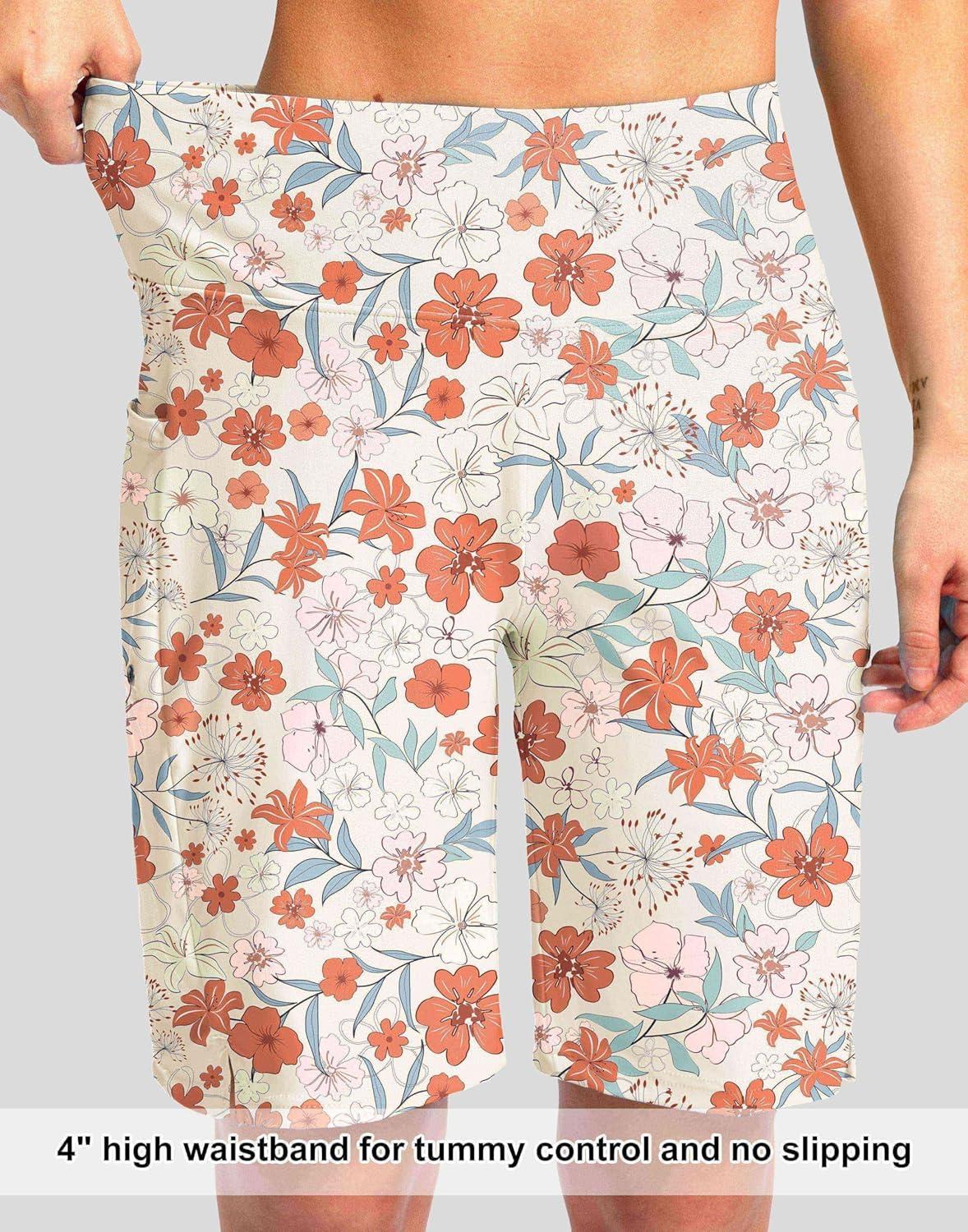 G Gradual Women's 9" Long Swim Board Shorts with Pockets High Waisted Knee Length Beach Swimming Shorts for Women with Liner(Orange Flower)