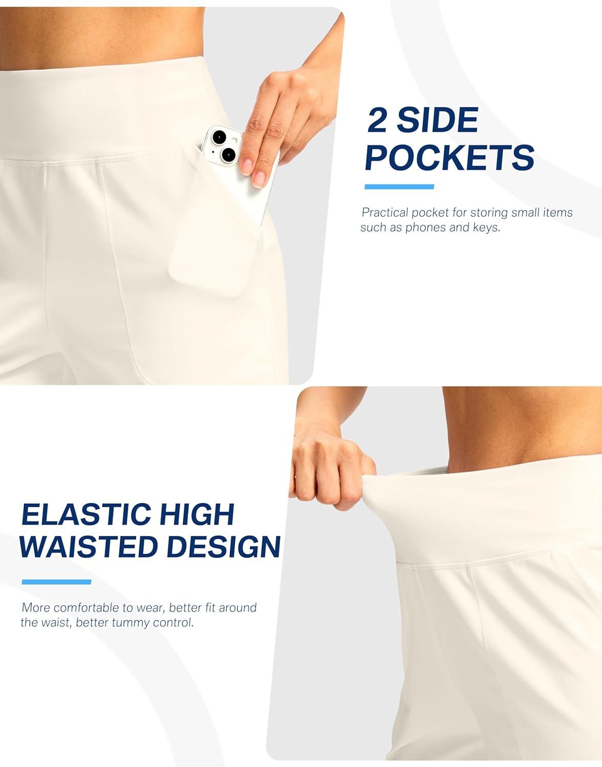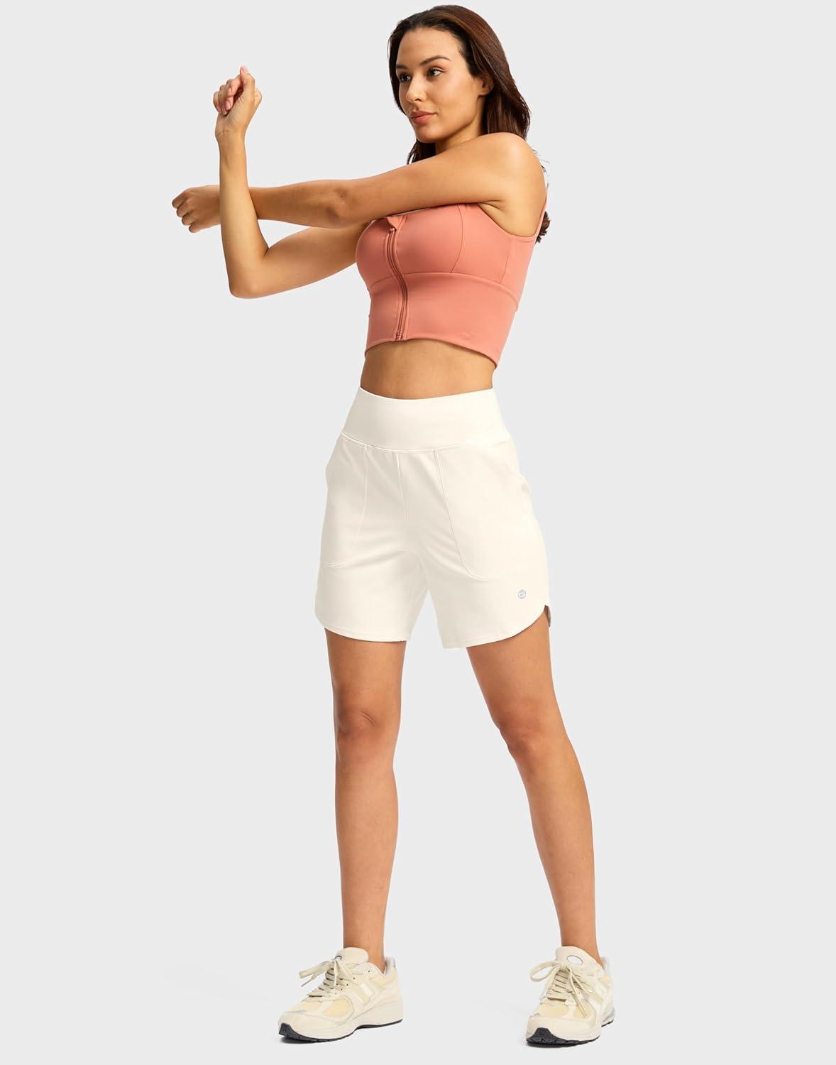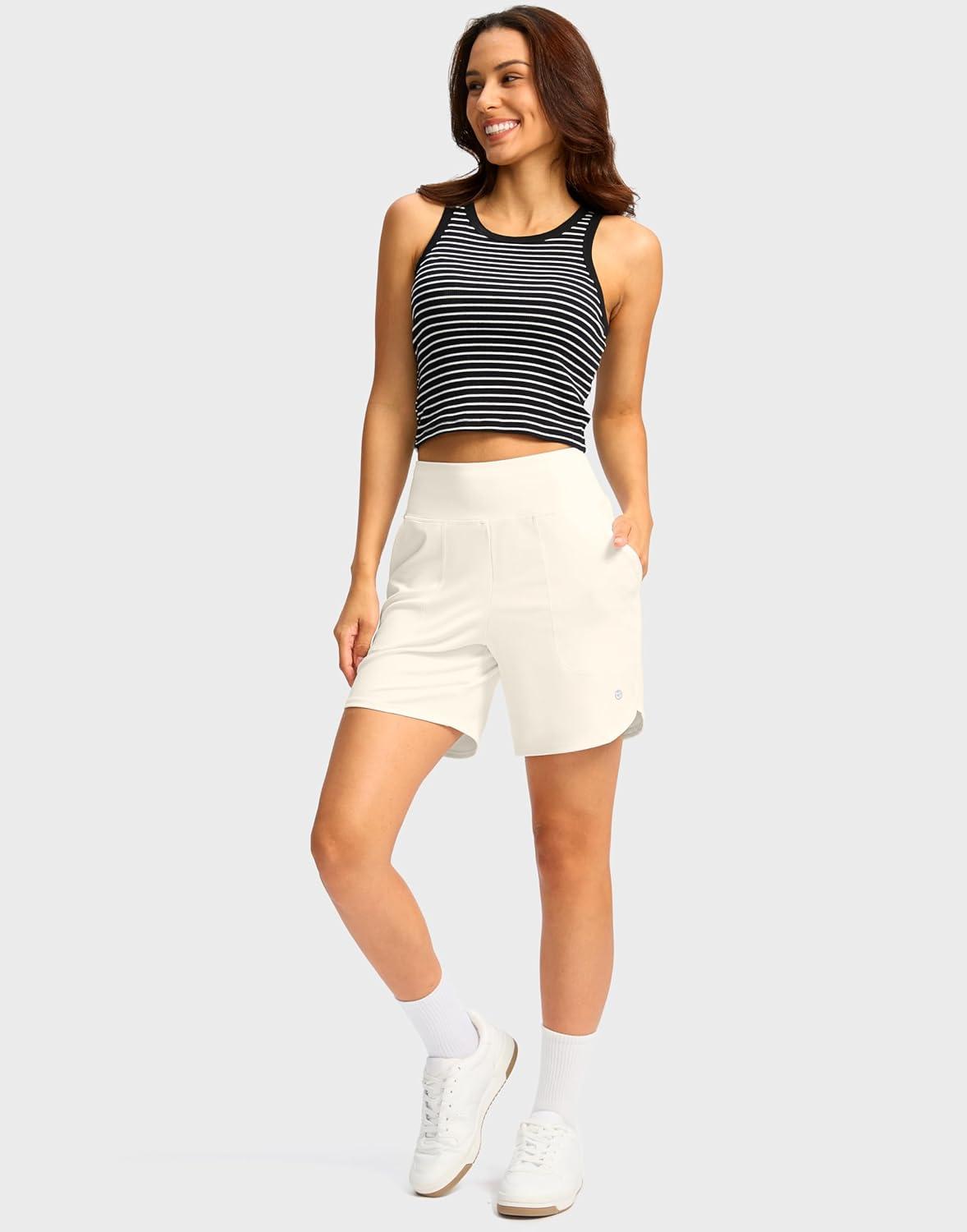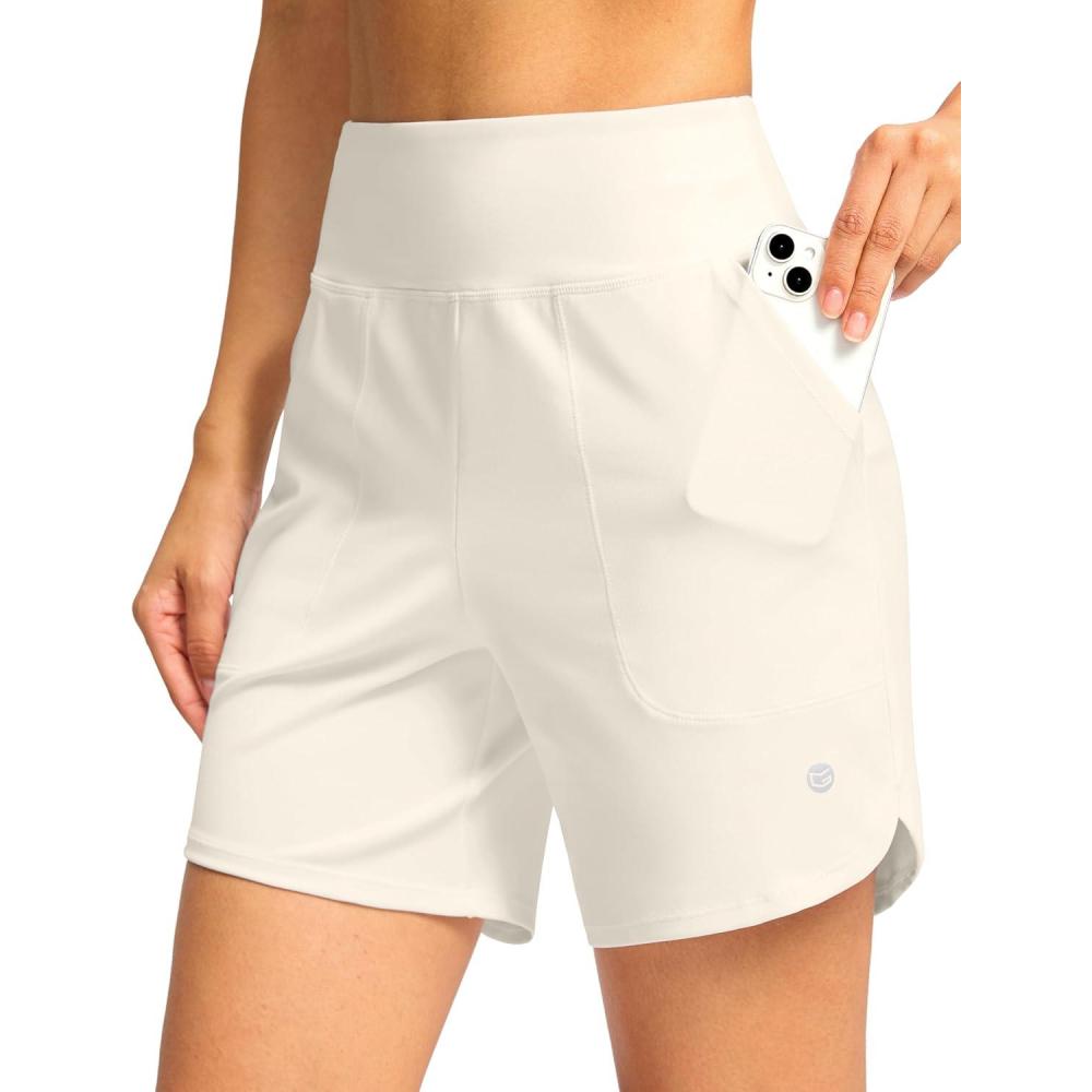 G Gradual Women’s Athletic Shorts 6″ High Waisted Stretchy Bermuda Shorts for Women Quick Dry Summer Casual Shorts(Off-white)