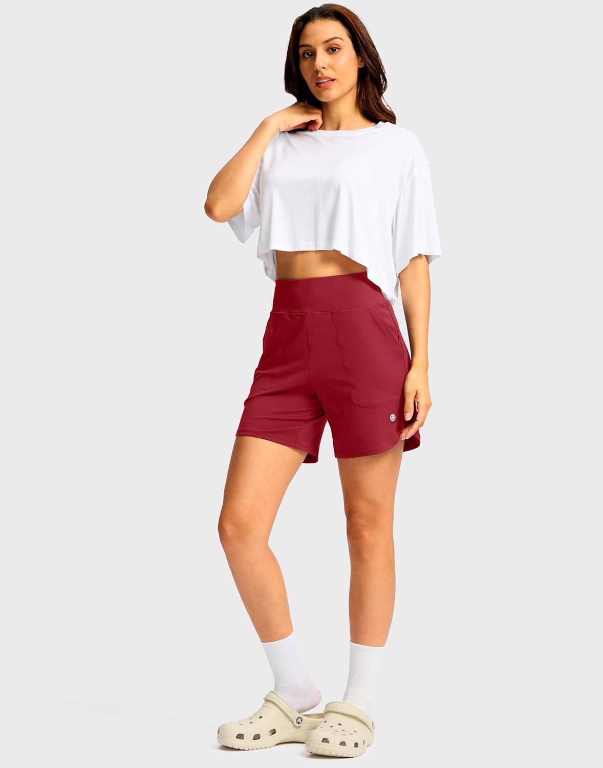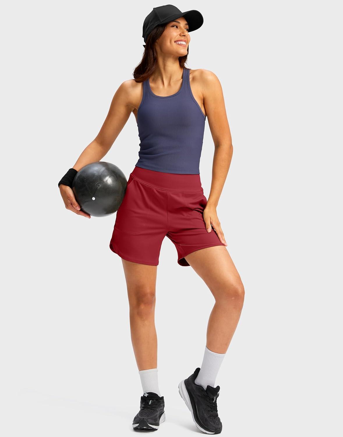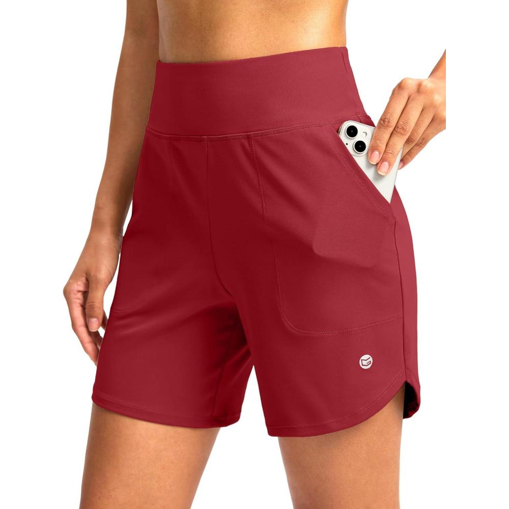 G Gradual Women’s Athletic Shorts 6″ High Waisted Stretchy Bermuda Shorts for Women Quick Dry Summer Casual Shorts(Tomato Red)