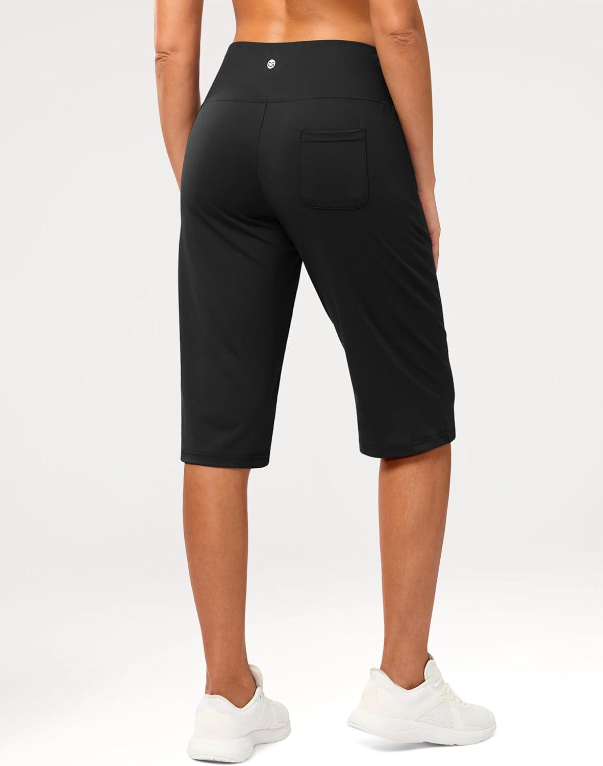 G Gradual Women's Bermuda Long Shorts 14" Knee Length Capris with Pockets High Waisted Athletic Casual Shorts for Women(Black)