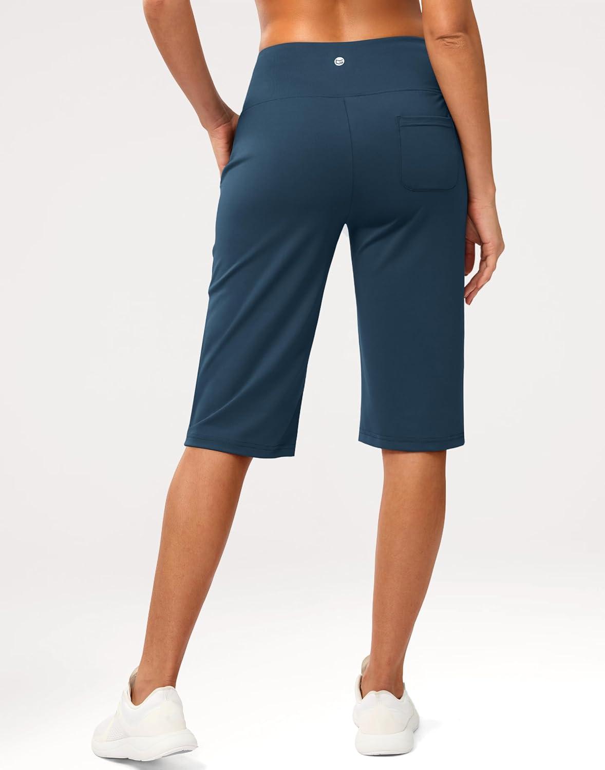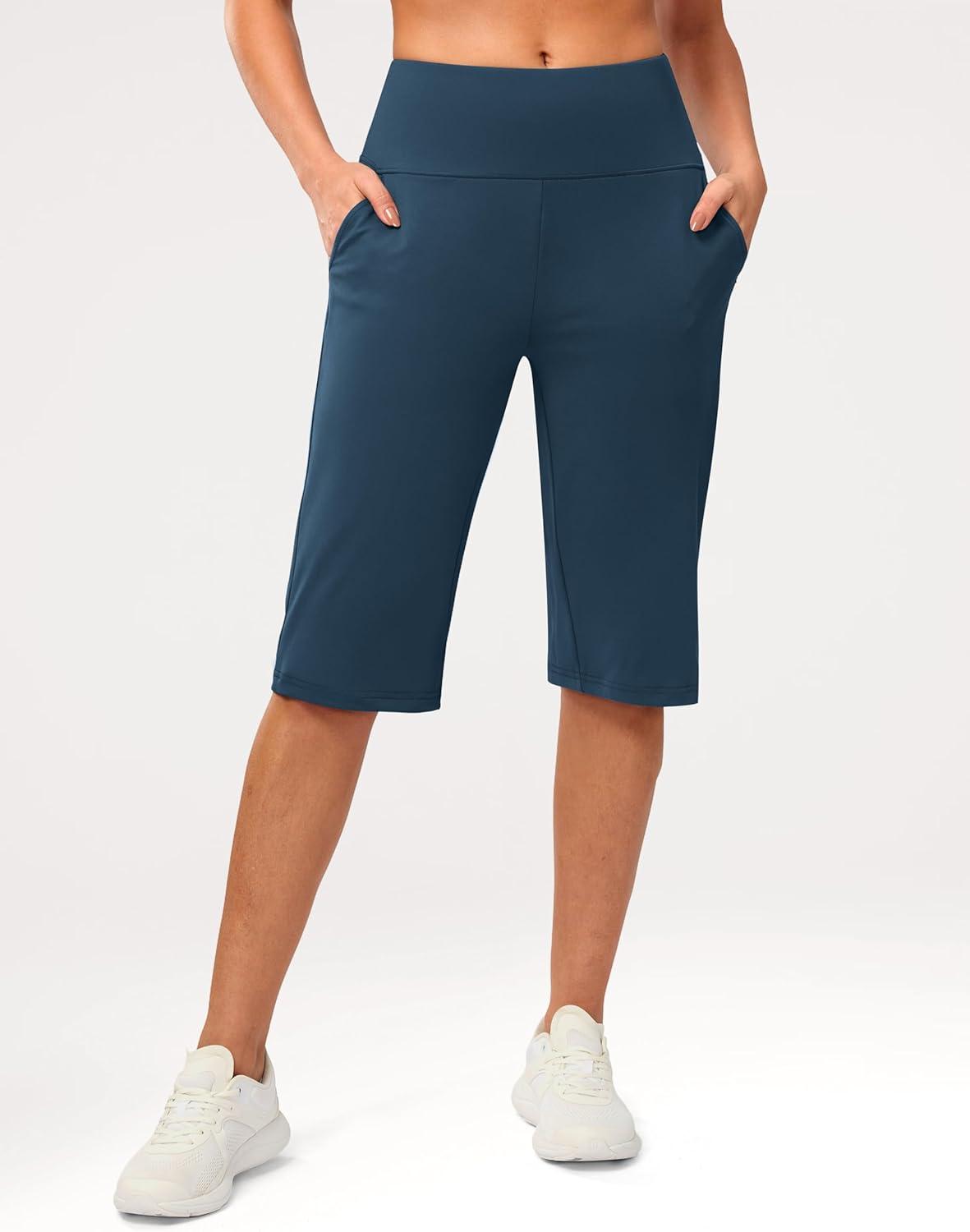 G Gradual Women’s Bermuda Long Shorts 14″ Knee Length Capris with Pockets High Waisted Athletic Casual Shorts for Women(Borealis Green)