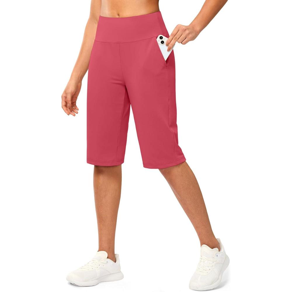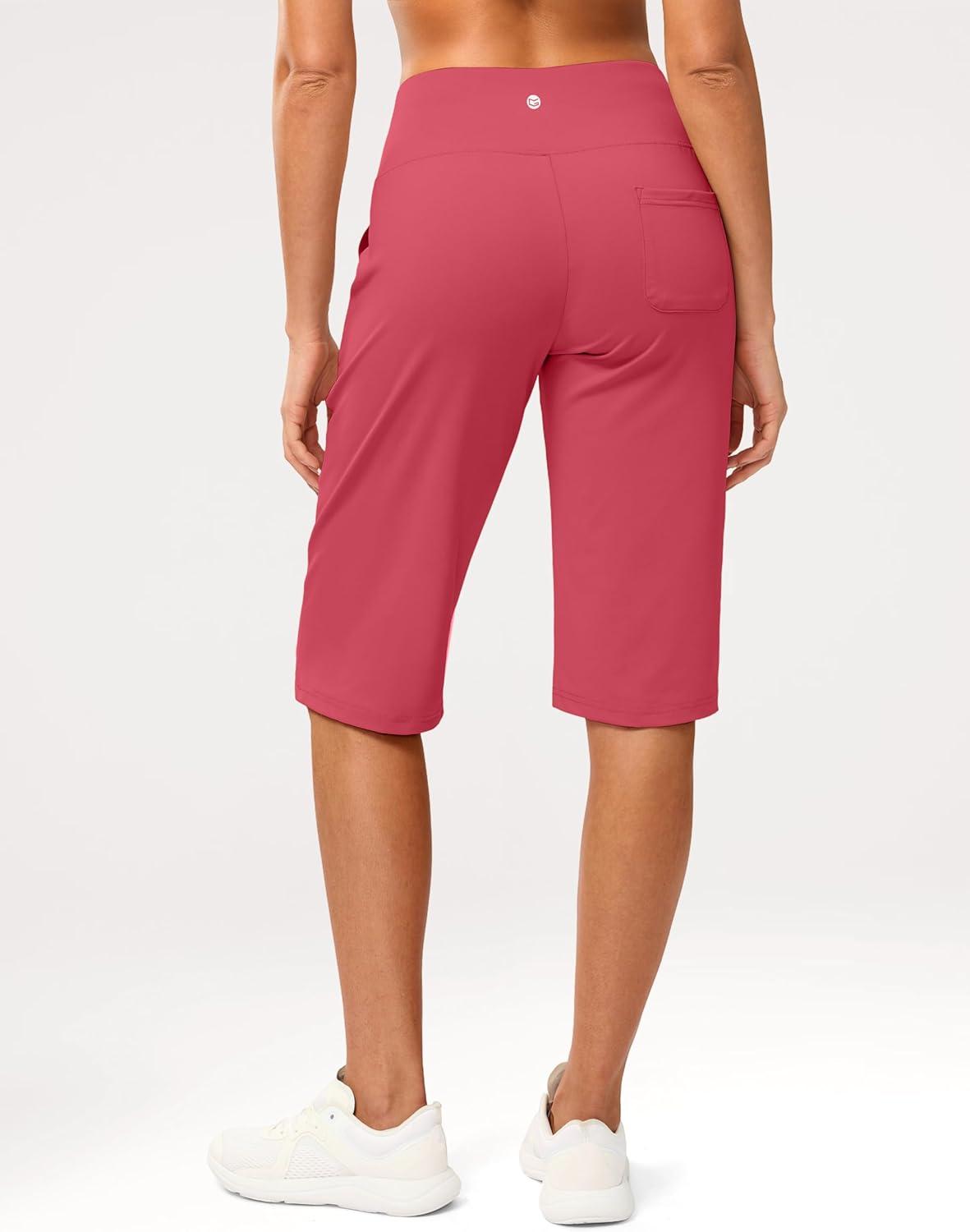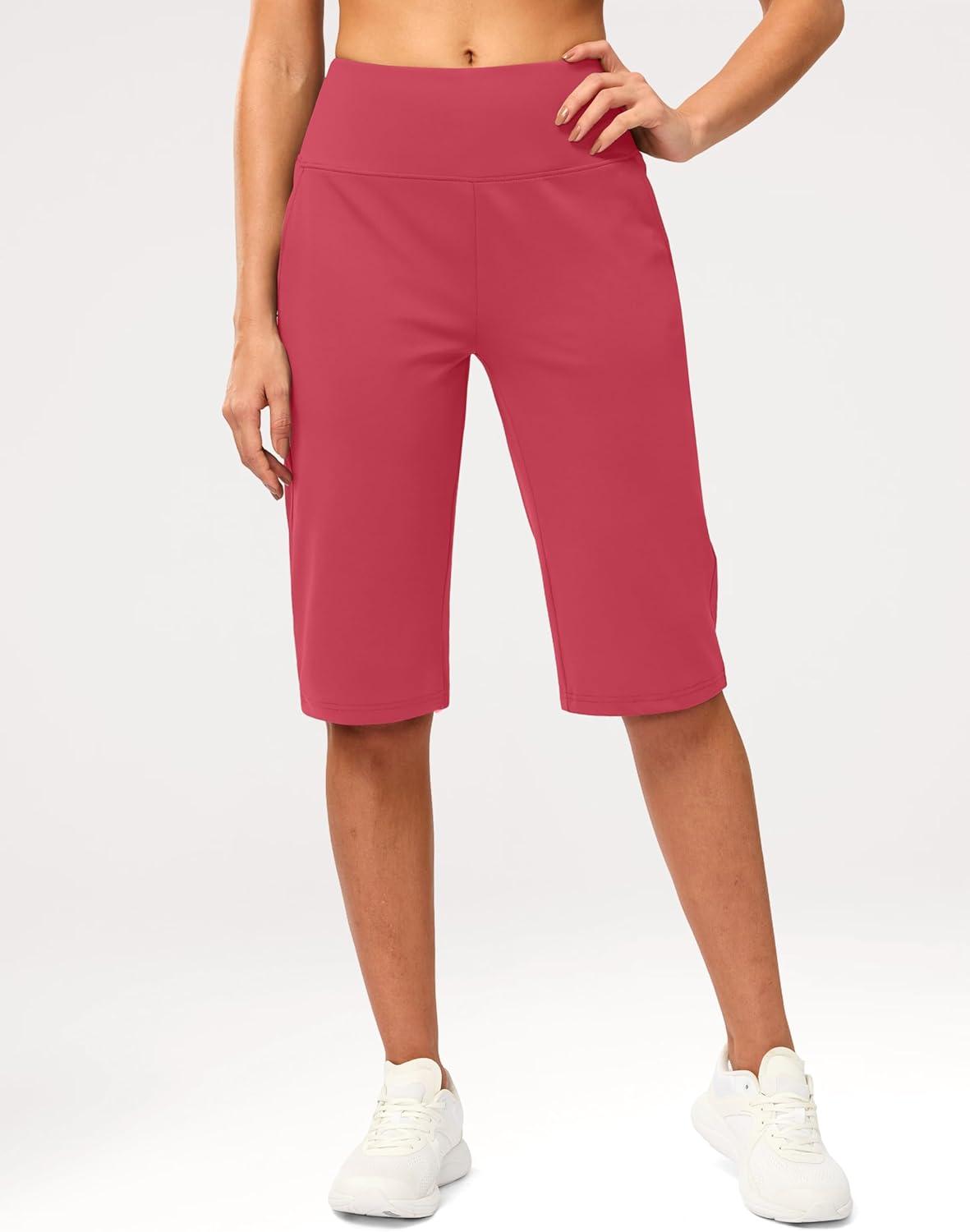 G Gradual Women’s Bermuda Long Shorts 14″ Knee Length Capris with Pockets High Waisted Athletic Casual Shorts for Women(Briar Rose)