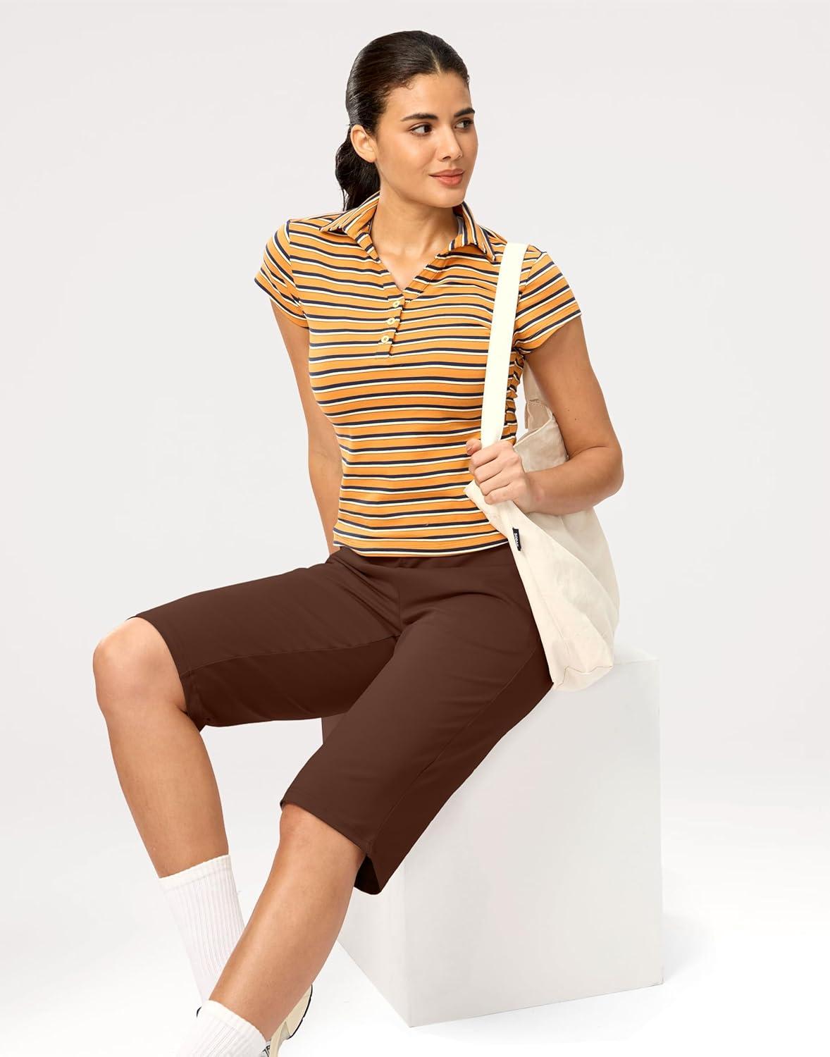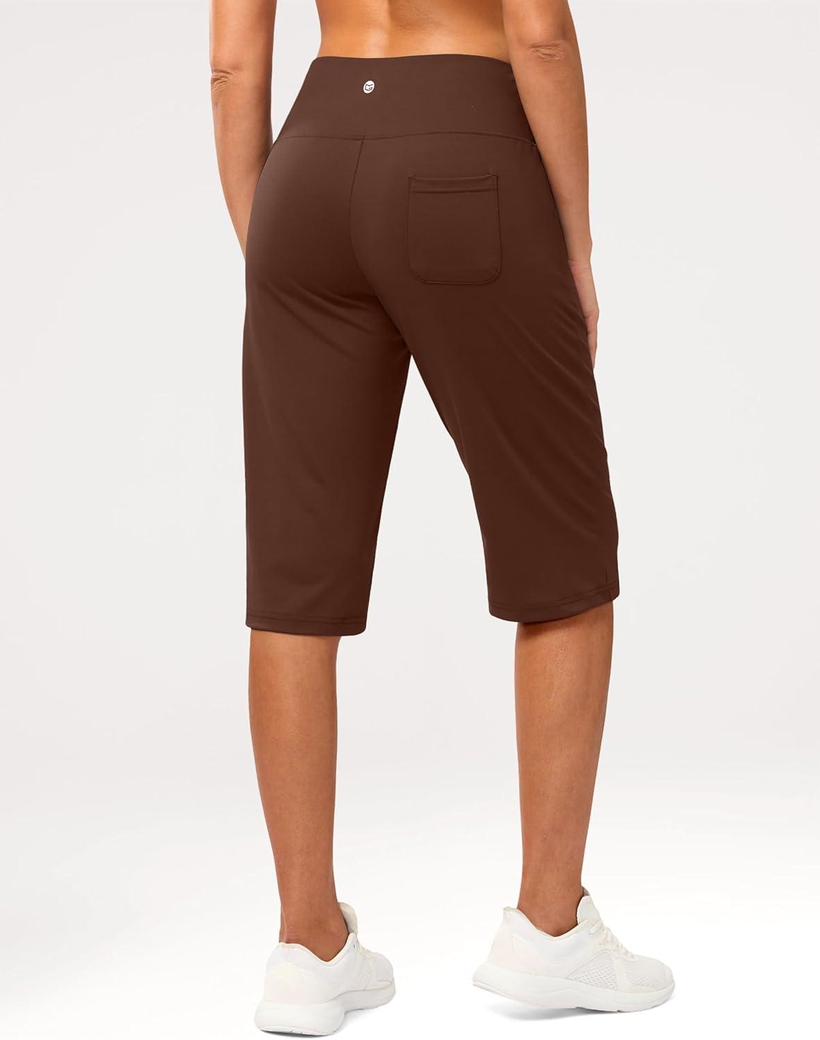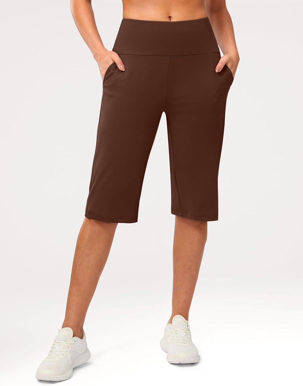G Gradual Women’s Bermuda Long Shorts 14″ Knee Length Capris with Pockets High Waisted Athletic Casual Shorts for Women(Espresso)