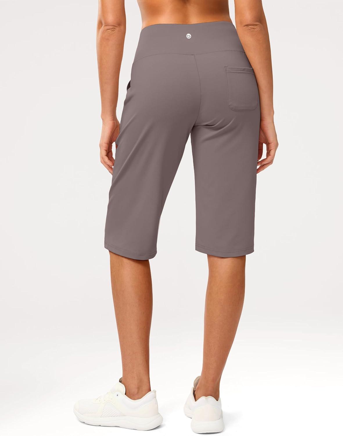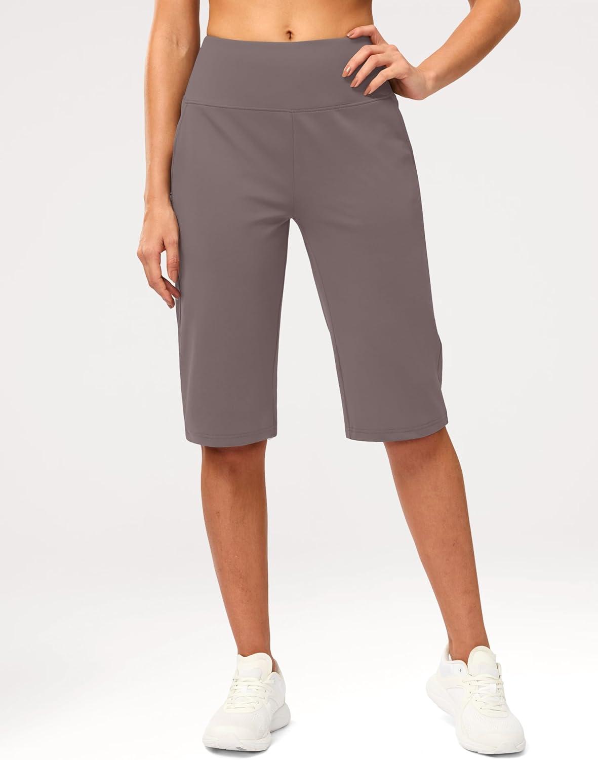 G Gradual Women’s Bermuda Long Shorts 14″ Knee Length Capris with Pockets High Waisted Athletic Casual Shorts for Women(Taupe)